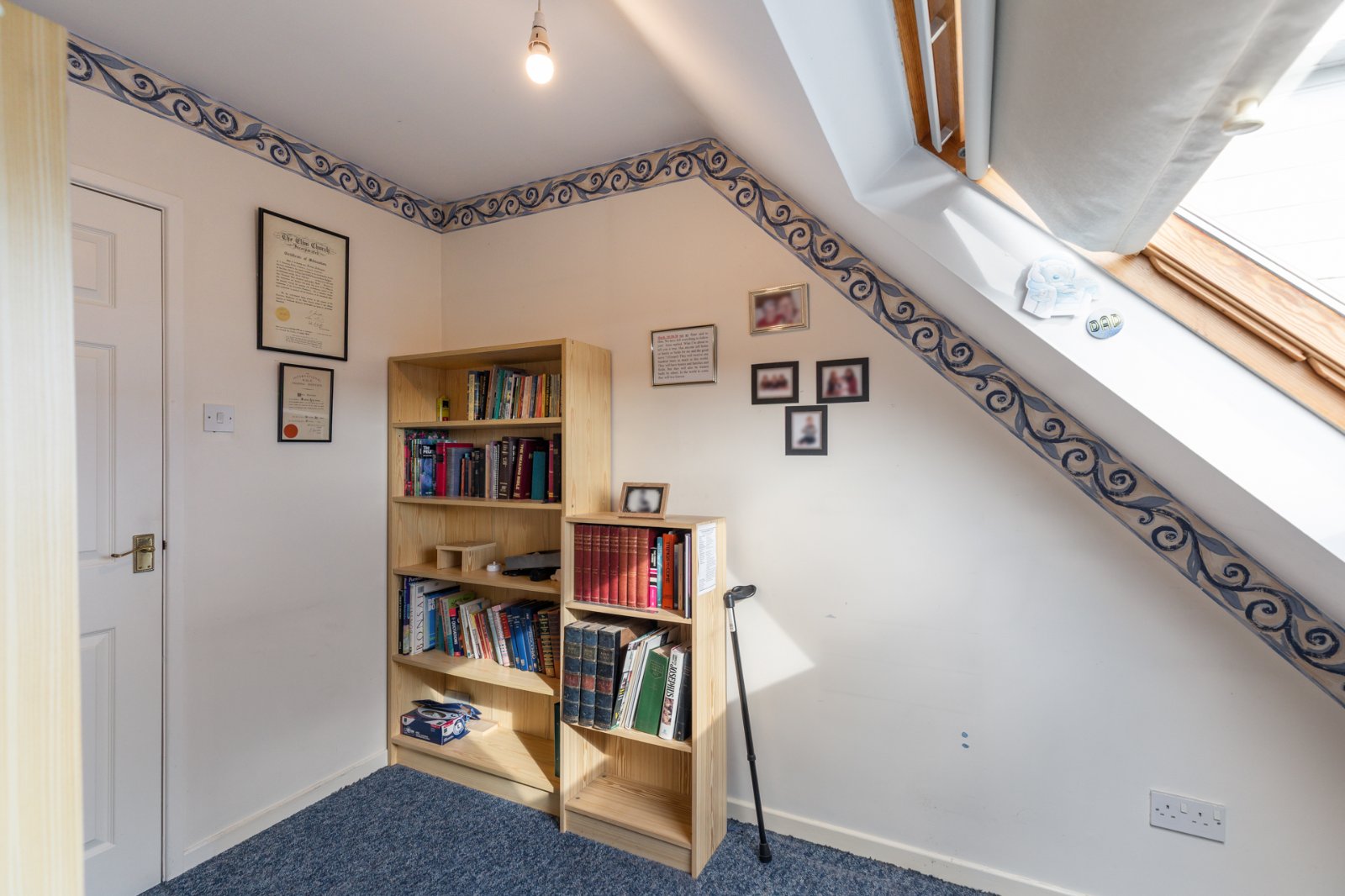 Access to shelved hotpress with lagged copper cylinder. Access to roofspace via aluminium ladder.