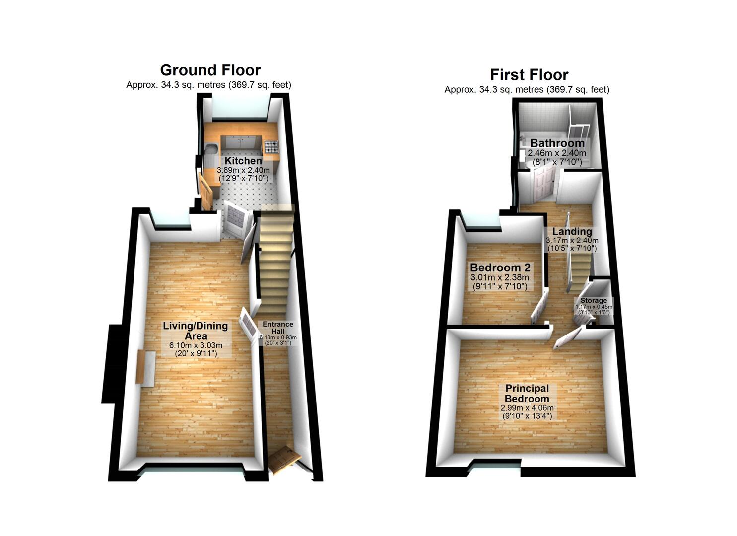 Two Well-Proportioned Bedrooms on the First Floor.