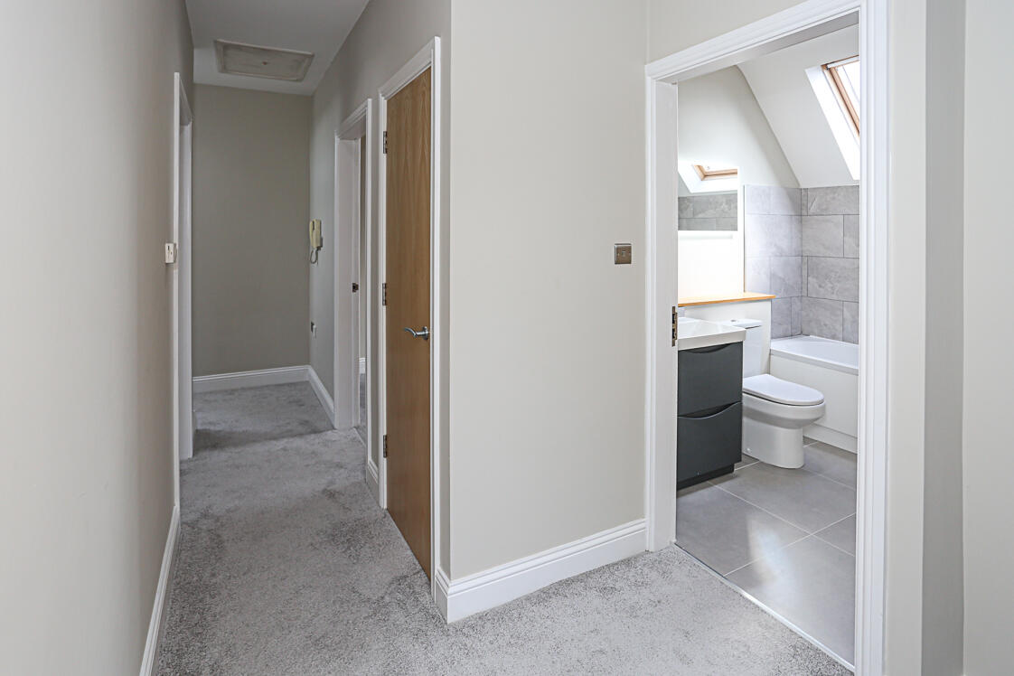 Hallway Velux windows, telephone access system, hotpress cupboard.