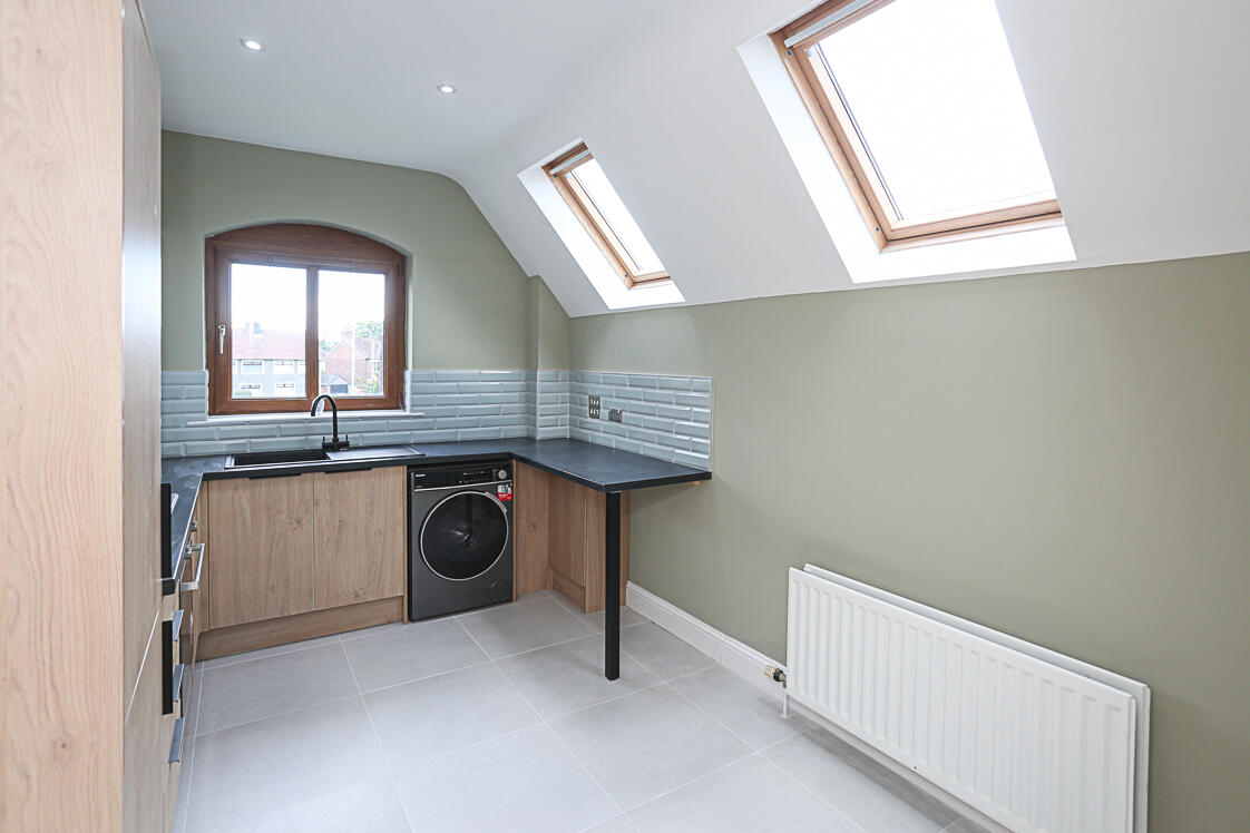 The spacious layout has been thoughtfully designed to suit contemporary lifestyles. At its heart is an impressive open-plan kitchen and dining area, filled with natural light and perfect for both everyday living and entertaining. The kitchen has been fully refurbished with brand new units and appliances, while both bathrooms have also been completely renewed, providing a sleek, modern finish throughout.