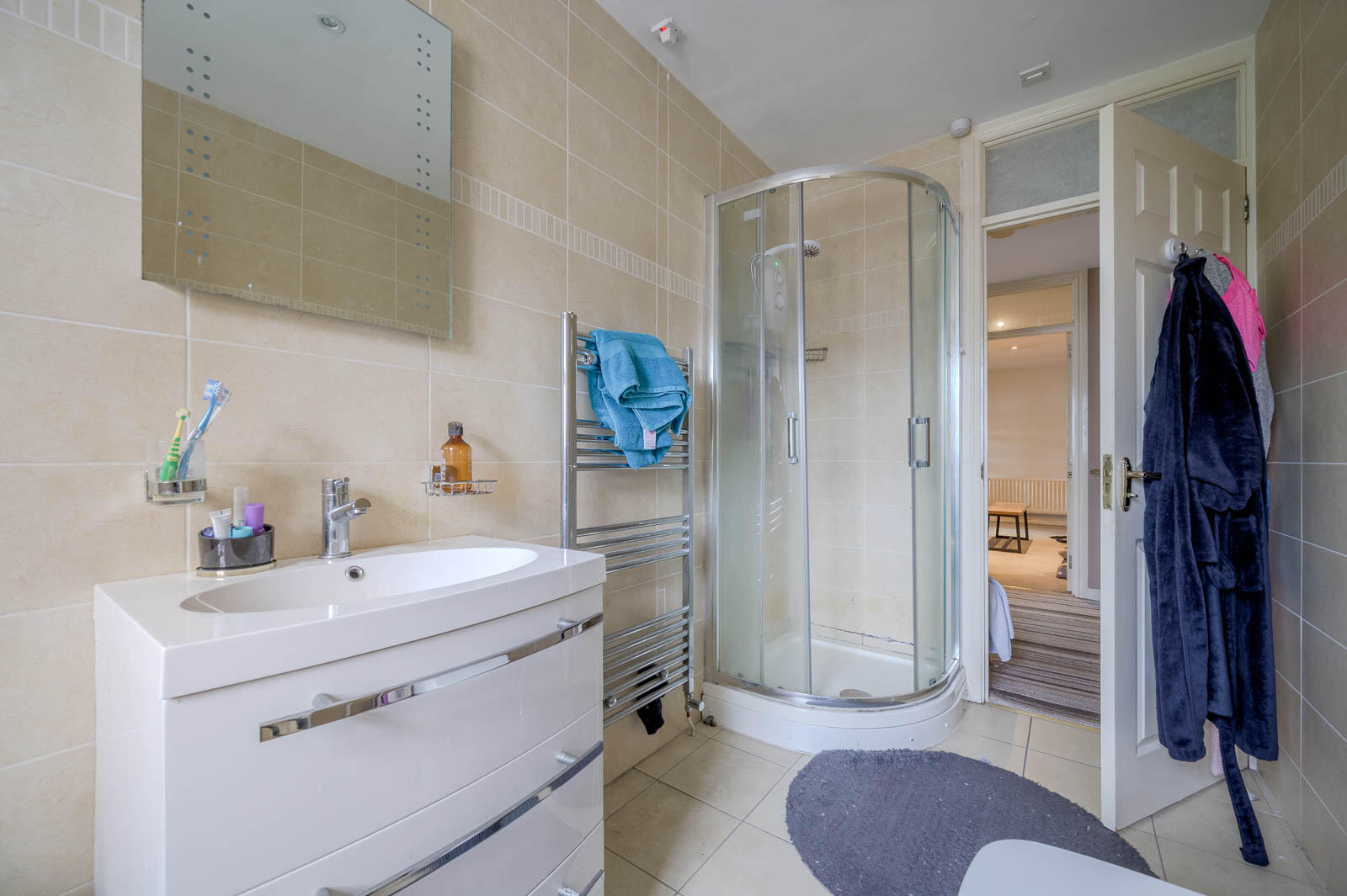 Contemporary Bathroom Finished to a High Standard with Stylish Tiling and White Suite