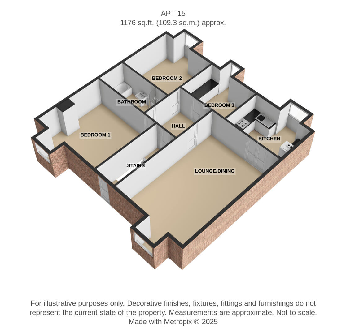 Spacious Three-Bedroom Apartment Offering Approximately 1,200 q Ft of Well-Laid-Out Living Accommodation