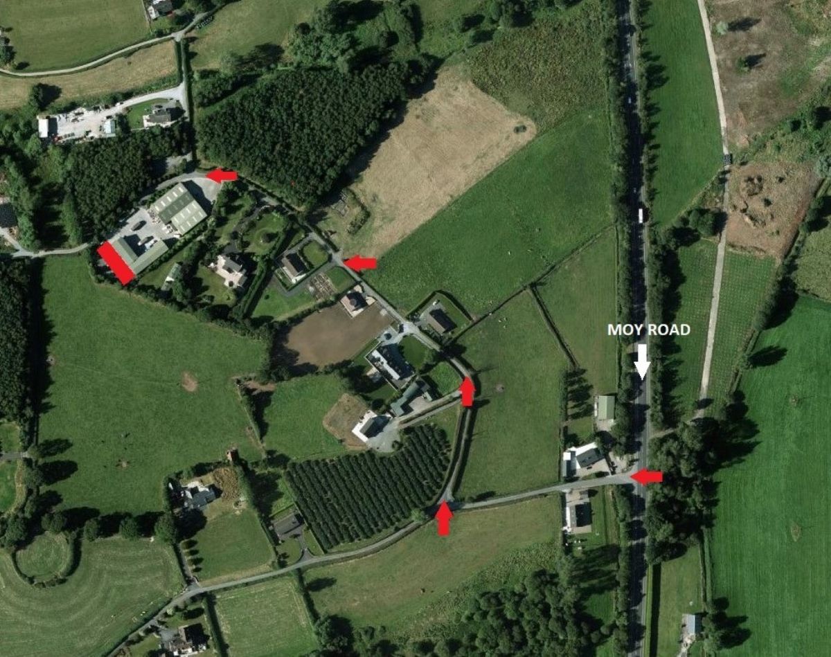 The new industrial commercial unit is located at No. 38A Annahagh Road and is accessed just off the main Moy Road. The unit is being built at the rear of an a few other commercial units with a shared entrance/yard. It is a rural area with a few other commercial units and a few surrounding residential properties.