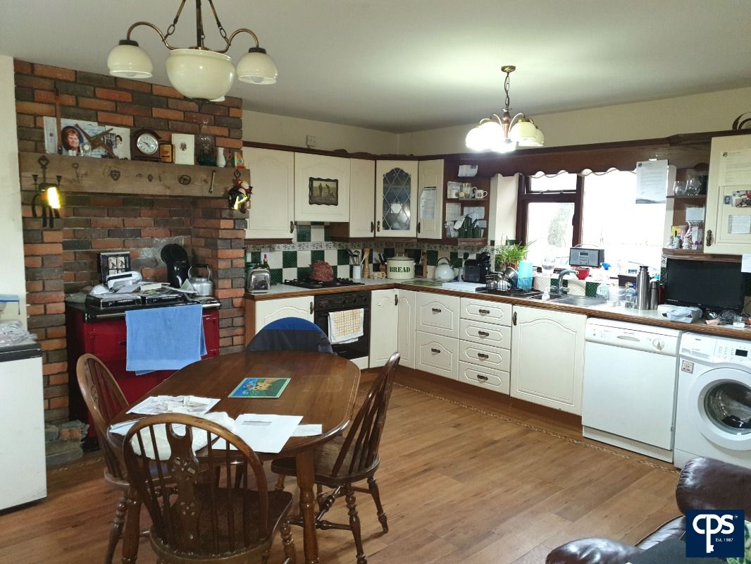 Excellent range of high and low level units with integrated electric oven, hobs and extractor fan. Plumbed for whites goods. Rayburn heat ranger with oil burner range cooker. Wooden flooring.