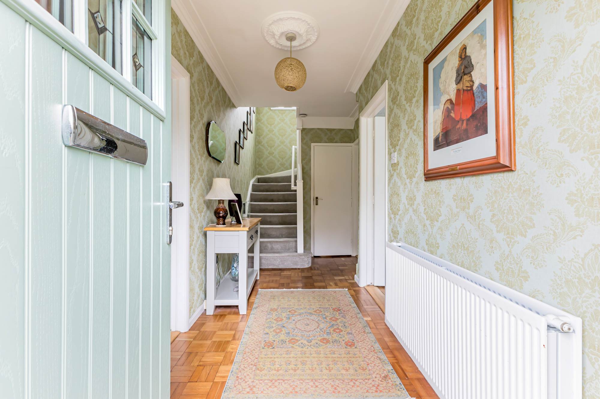 Bright and Welcoming Reception Hall with Cloakroom and Original Solid Wooden Flooring Throughout the Hallway and Two Front Reception Rooms