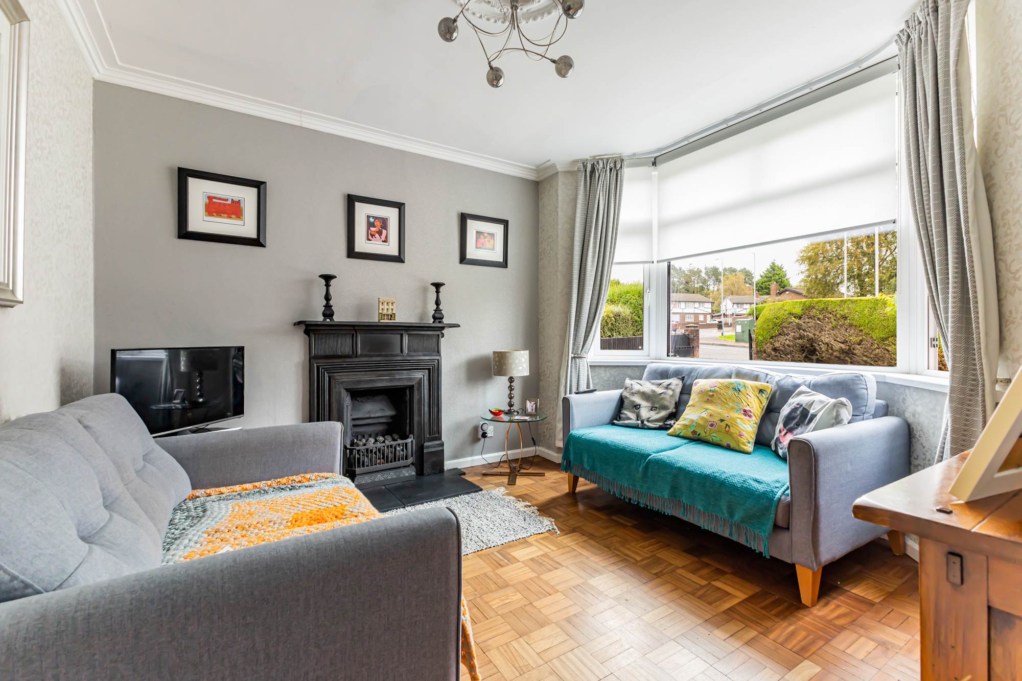 (measurements into bay window). Outlook to front. Original parquet flooring. Cast iron fireplace and inset with gas coal effect fire, slate hearth. Cornice ceiling, ceiling rose.
