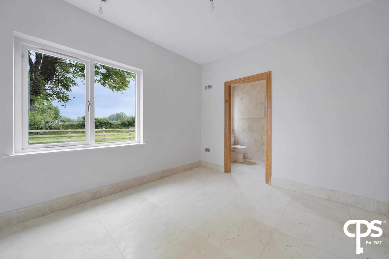 The fourth double bedroom has tiled flooring and skirting, spot and drop lighting, and a wooden frame double glazed window. The bedroom benefits from a double built-in wardrobe and an ensuite shower room