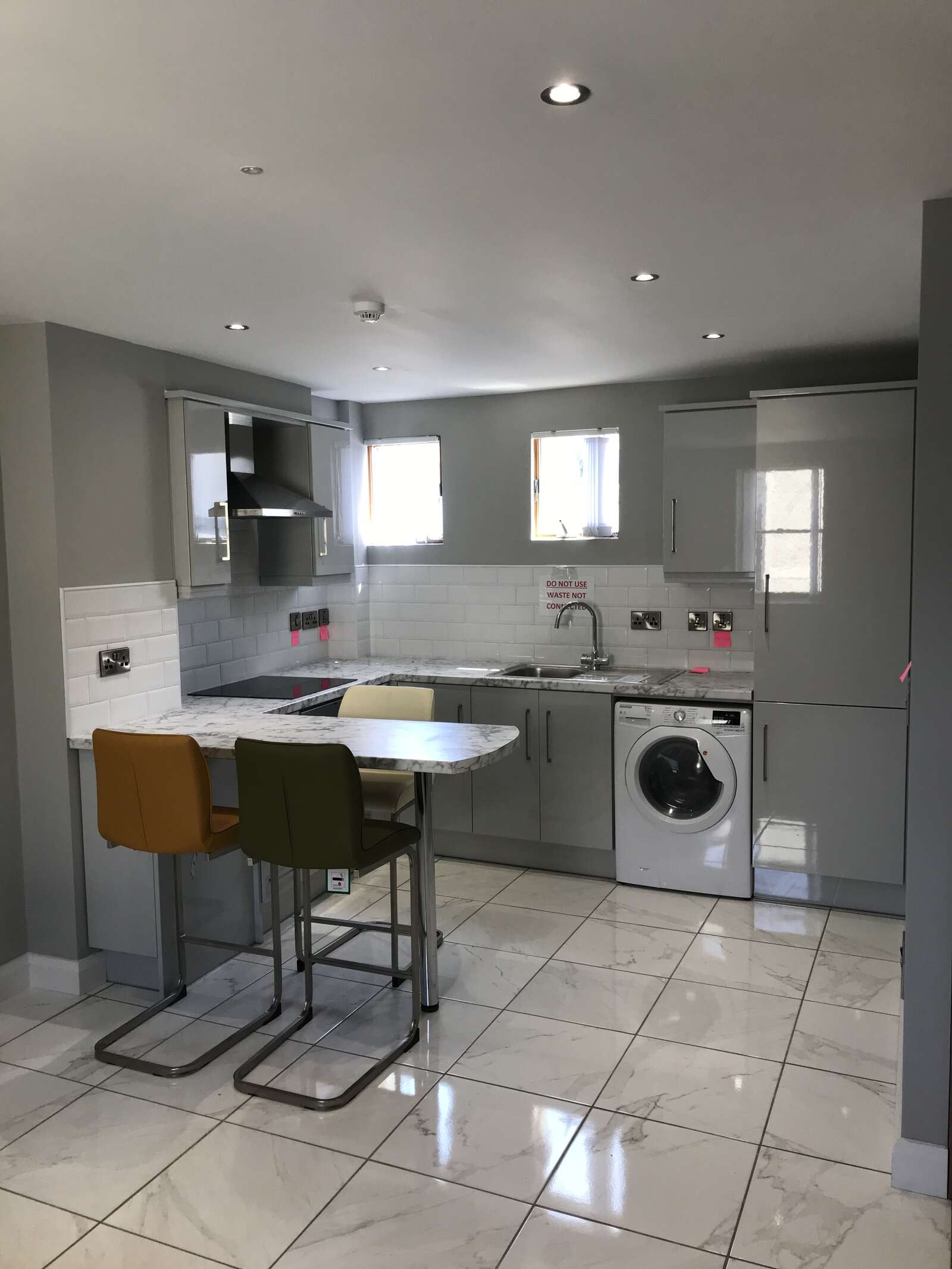 - Fully equipped kitchen with electric cooking facilities, integrated fridge freezer, and a washer dryer.