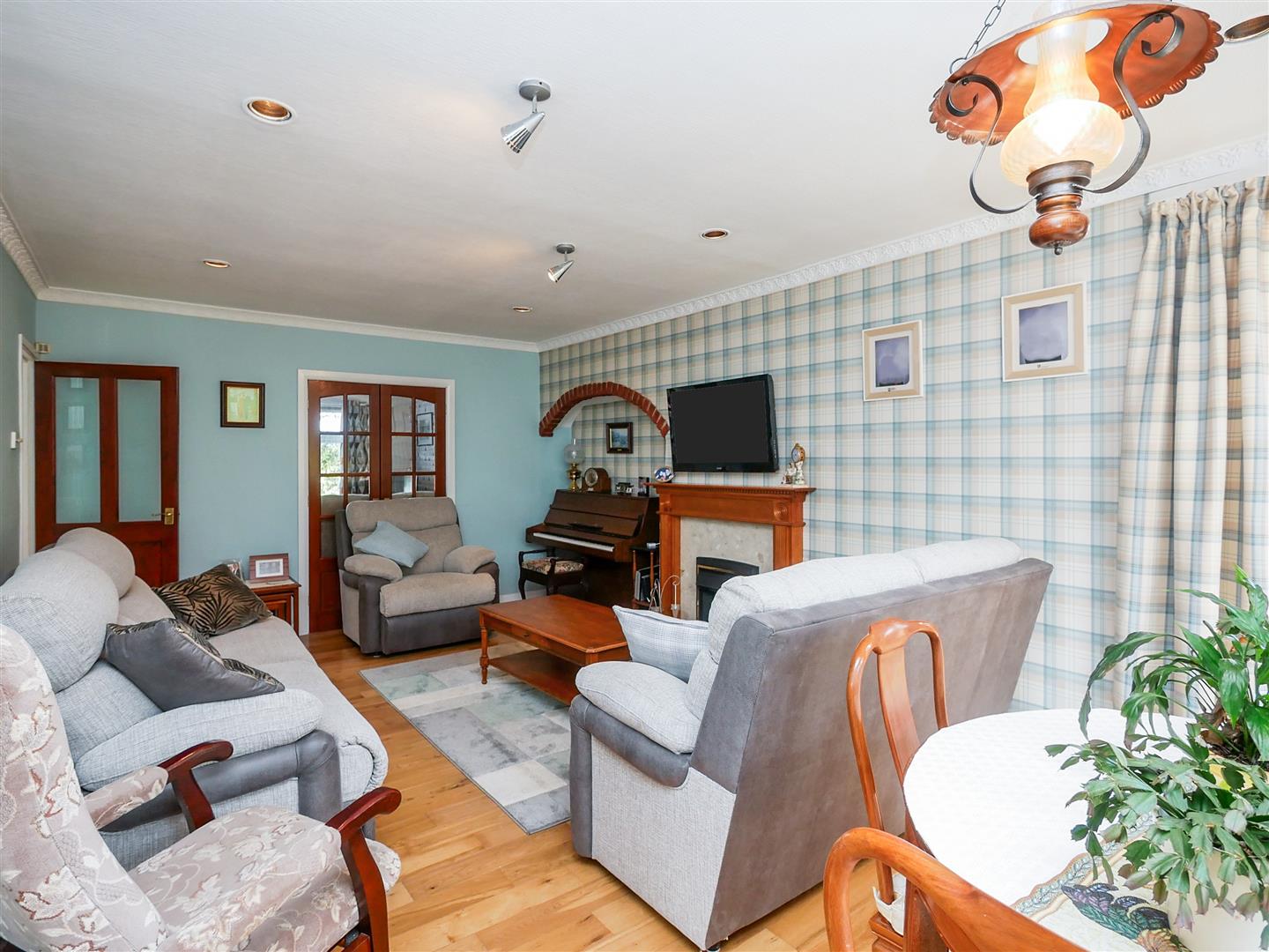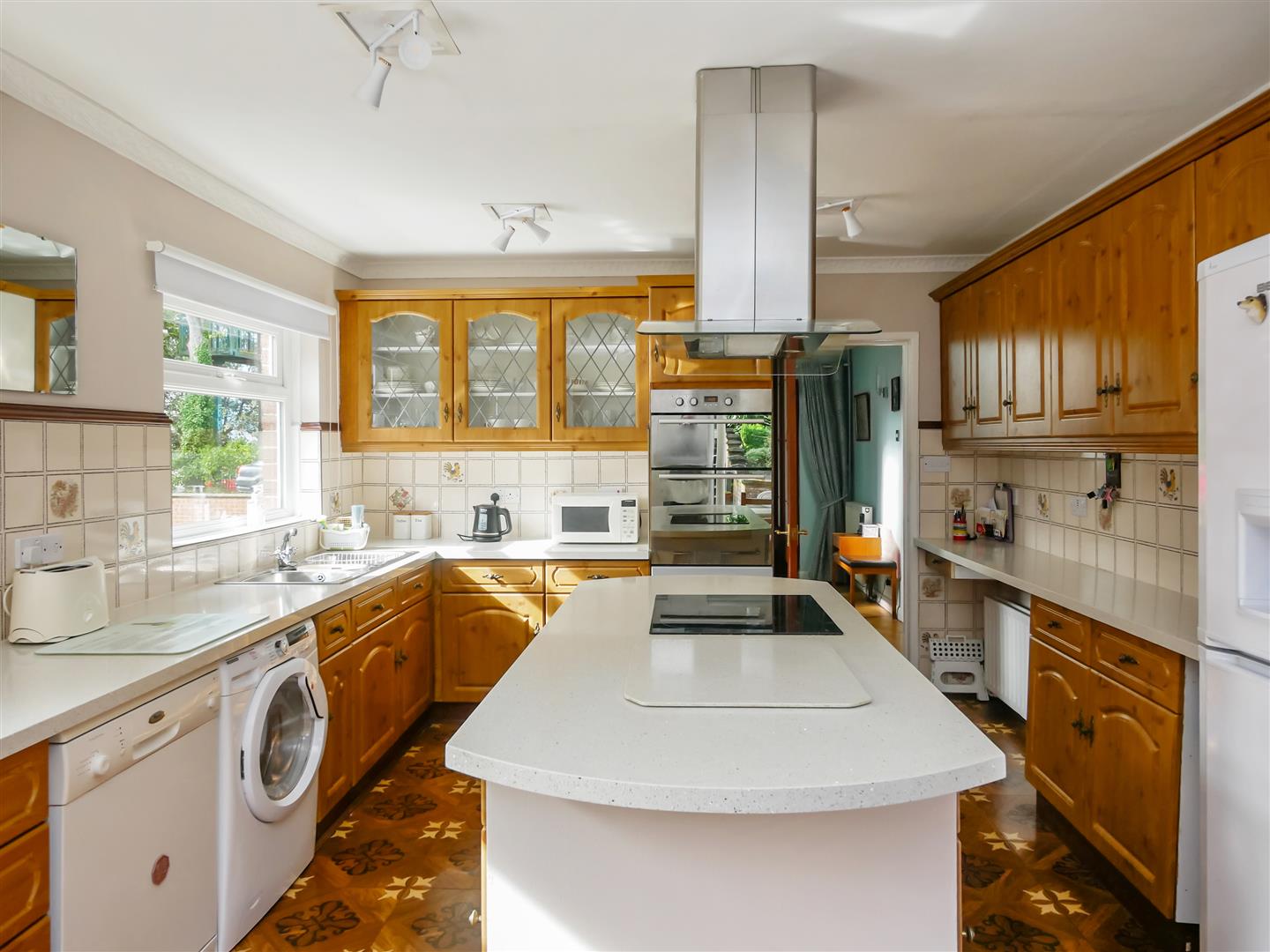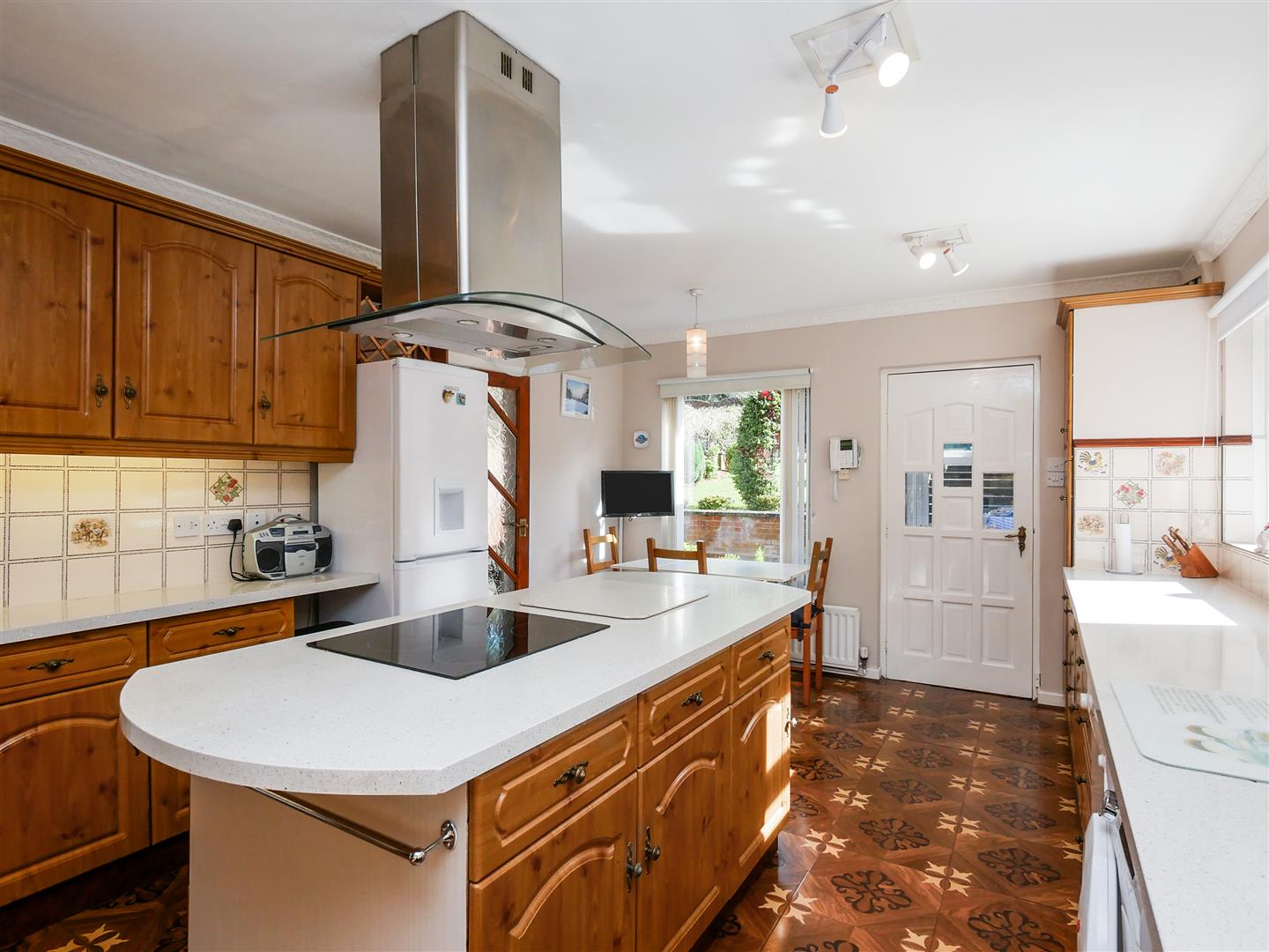 Bright and spacious open plan kitchen / dining area complete with a selection of upper and lower level units and centre island. Integrated electric eye-level oven, four ring hob, stainless steel overhead extractor fan and stainless steel sink with drainer. Plumbed for washing machine and dishwasher. Part tiled walls and wooden effect flooring. Glazed hardwood door open onto rear porch.