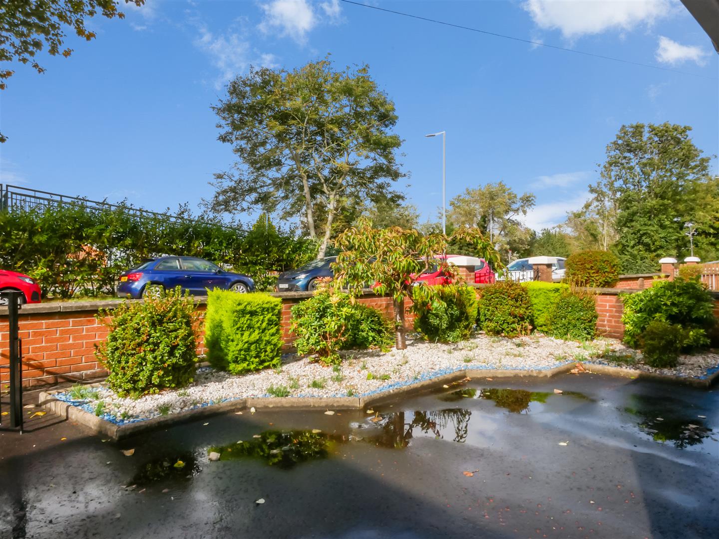 Low maintenance garden to the front with tarmac driveway to the side offering off street parking and giving access to attached garage to the rear. Bordered by red brick wall.