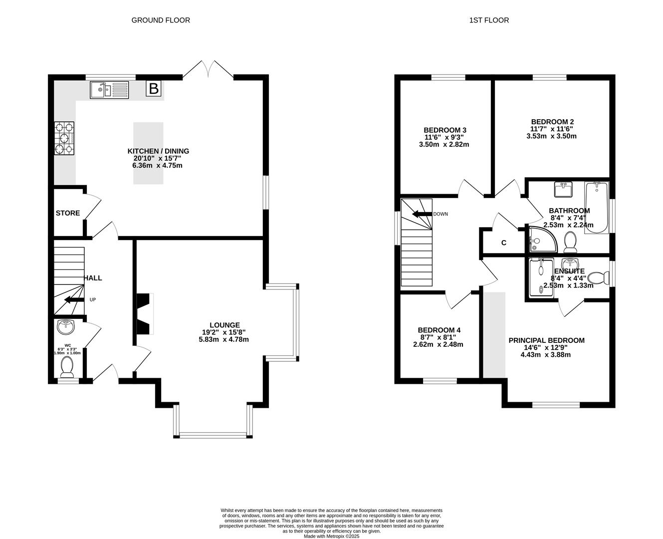 Internally the property features a spacious and bright lounge with wood burning stove, an open plan living/kitchen with a range of modern fitted units and granite worktops from Interior360, complimented by a compact utility/cloakroom and WC. It also benefits from an oak herringbone floor throughout the ground floor. On the first floor there are four well proportioned bedrooms, master with ensuite shower room and a modern family bathroom.