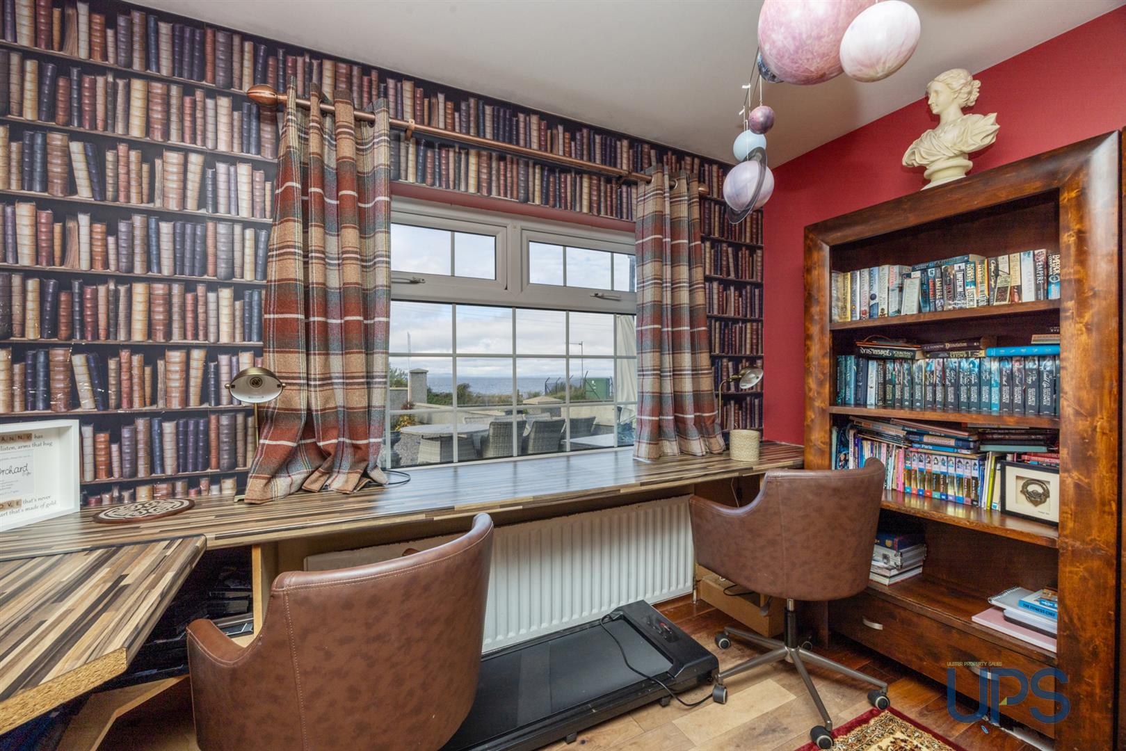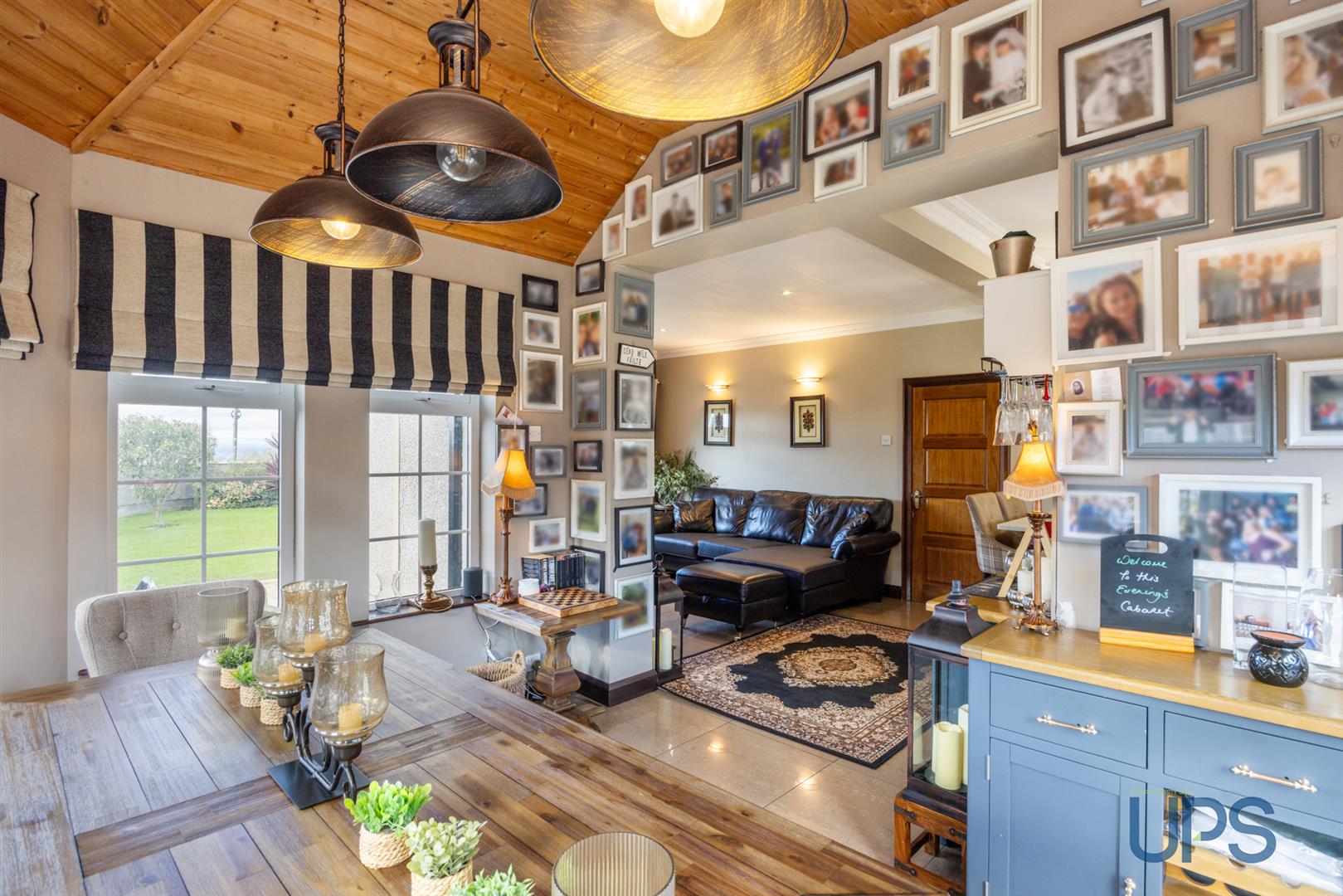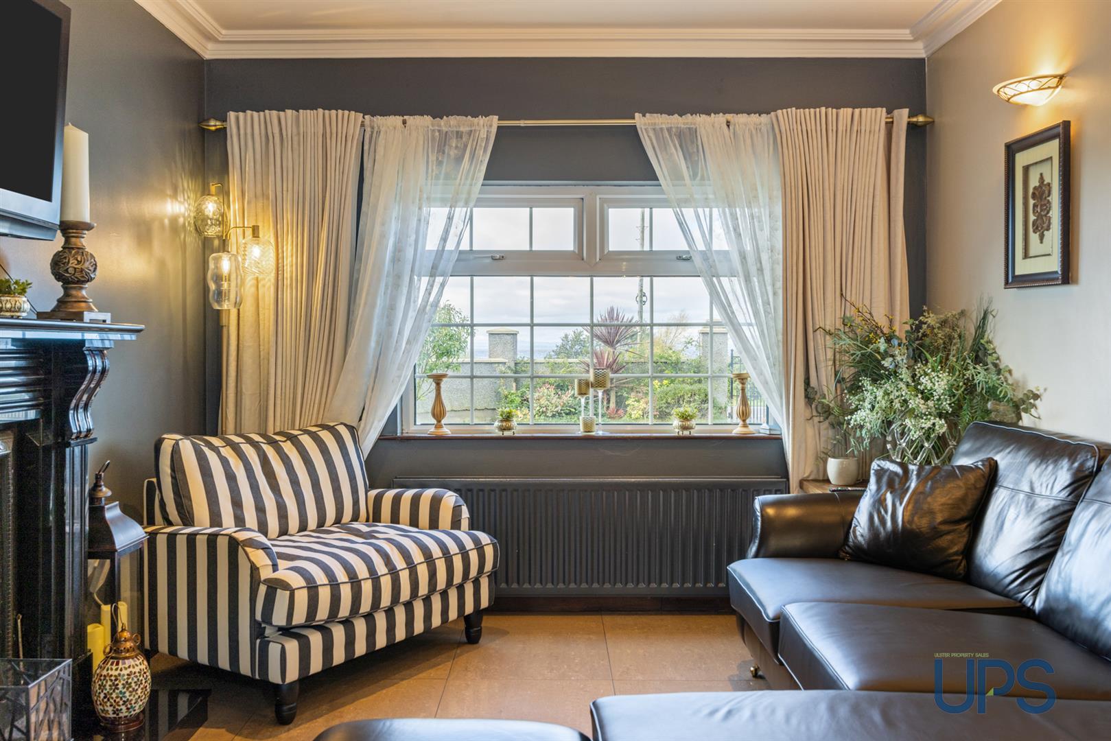 There are three reception rooms including a formal living room with magnificent views and a contemporary open plan kitchen, living and dining area. The kitchen is finished to a high standard with a central island providing generous seating and dining space - perfect for family life and entertaining. This area leads through to a bright and airy sunroom that captures the stunning outlook across the gardens and Lough Neagh.