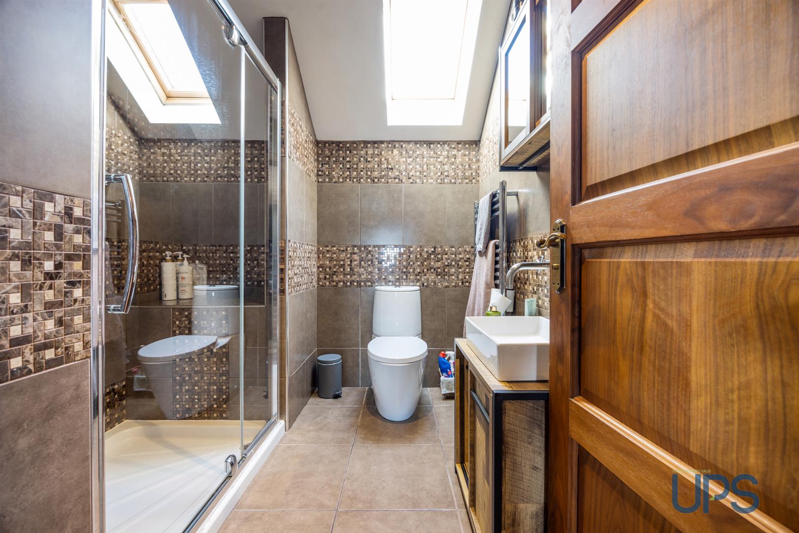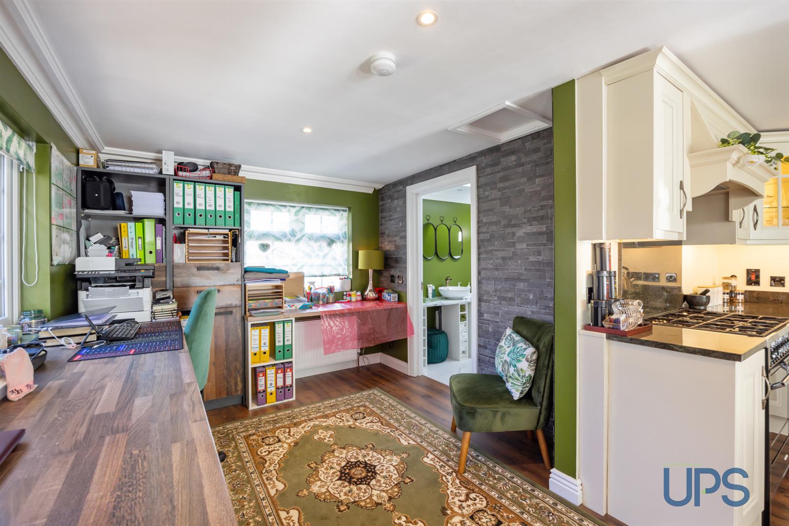 An excellent opportunity for self-contained accommodation, suitable for a variety of uses including a granny flat, teenager´s suite, or an ideal home office. The space briefly comprises an attractive fitted kitchen with a range of high and low-level built-in units, single drainer stainless steel 1½ bowl sink unit, Granite worktops, extractor canopy, and spotlights. Open plan to a dining area with feature built-in seating. There is also a modern shower room incorporating a large shower cubicle with electric shower unit, low-flush W.C., wash hand basin, cornicing, Velux window, and partially tiled walls.