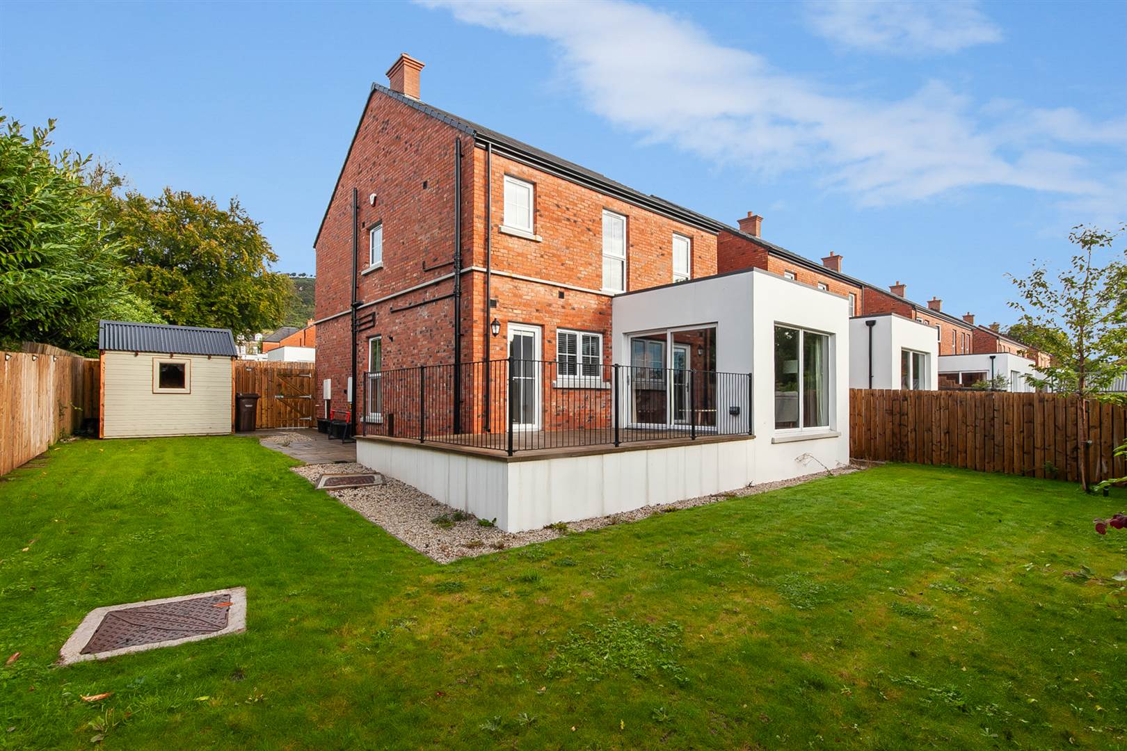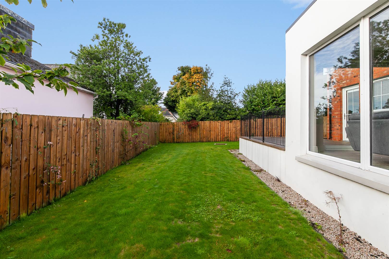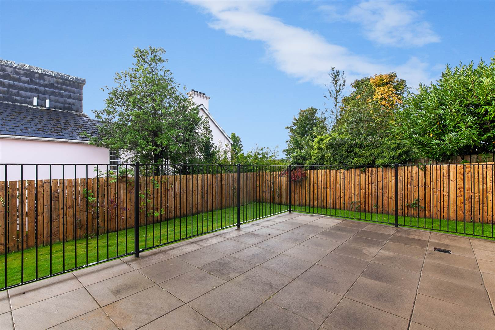 Private and secure garden laid in lawns and raised terrace