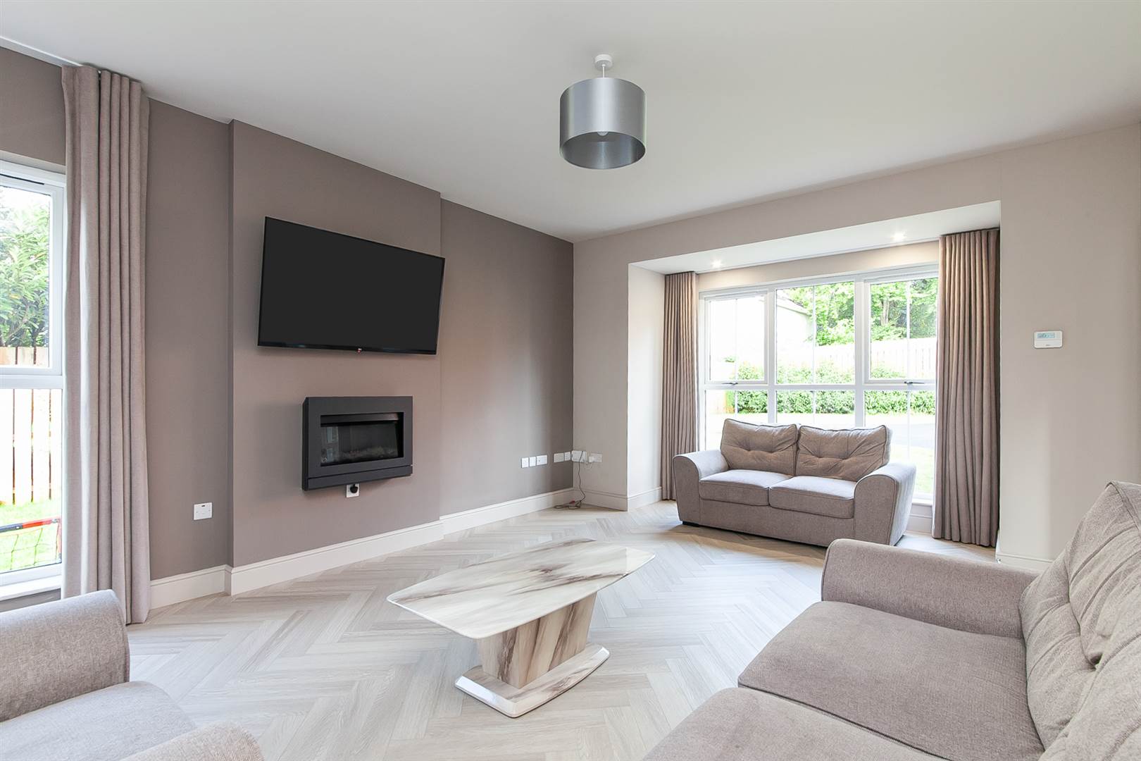 Drawing room with feature electric wall mounted fire