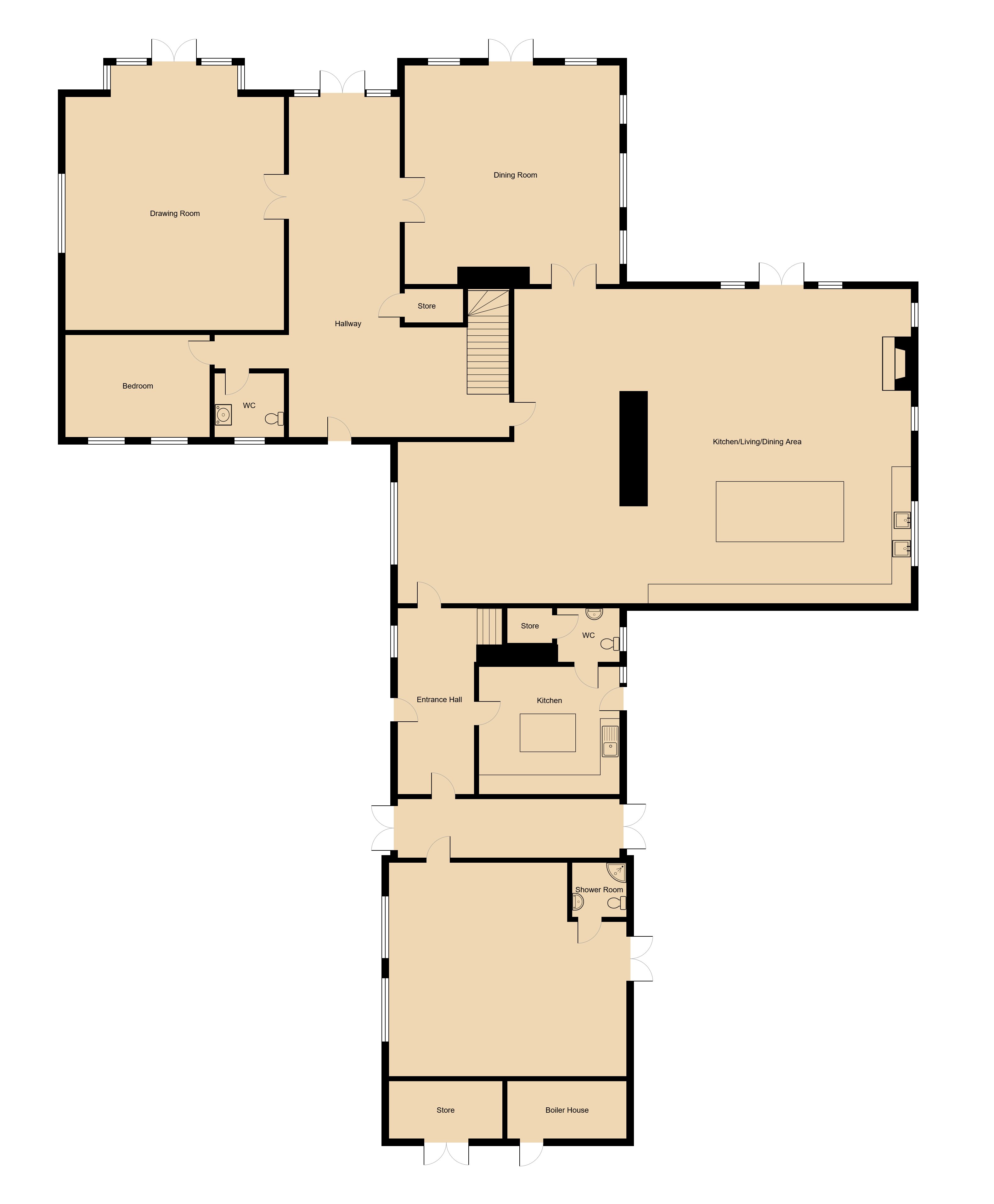 Open Plan Kitchen/ Living/ Dining Area 51'2" X 32'6" (15.60m X 9.90m)