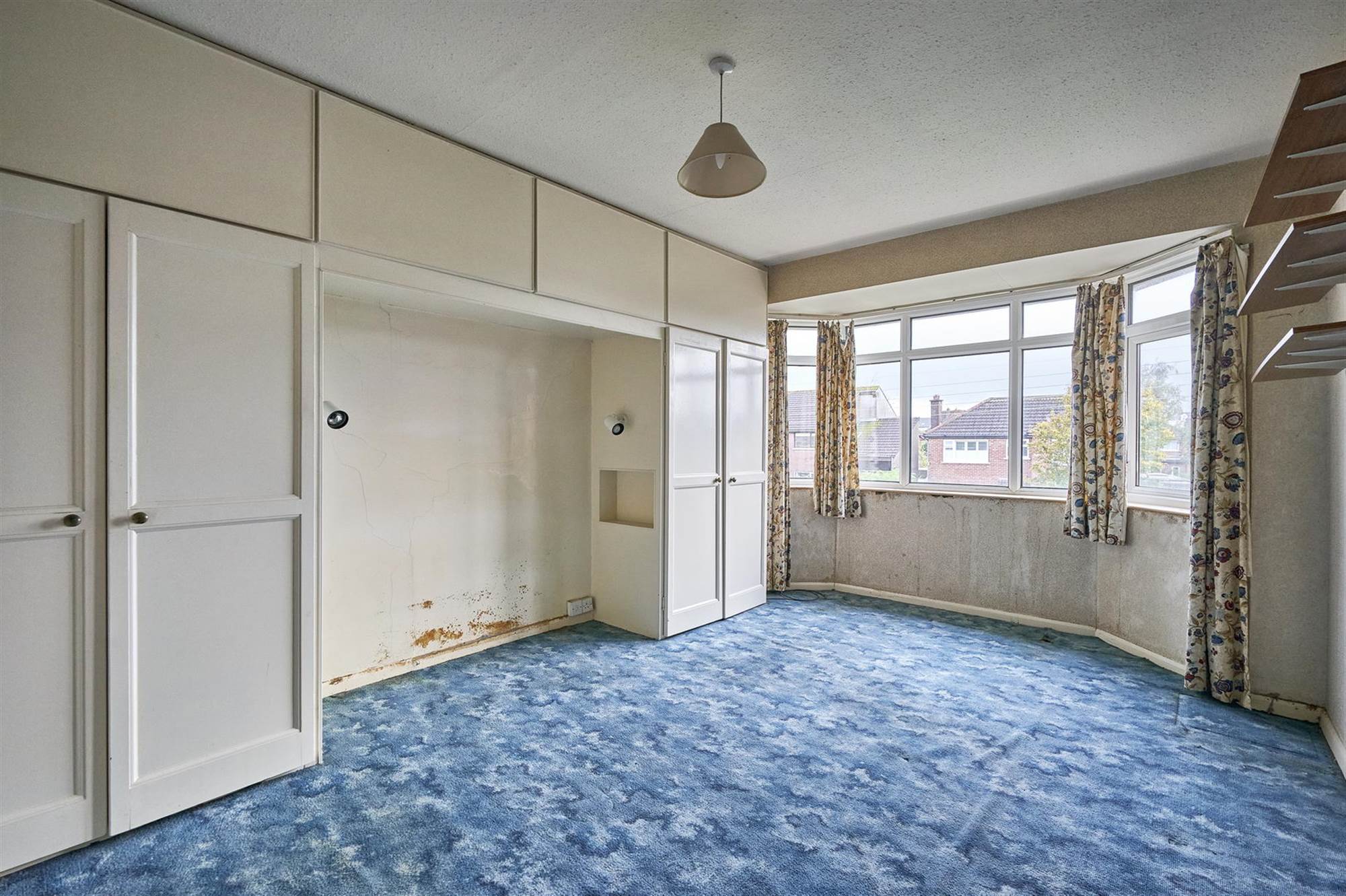 (into bay) Range of built in robes with cupboard above.