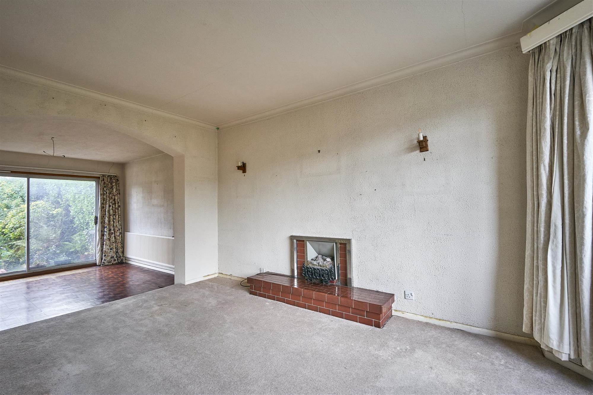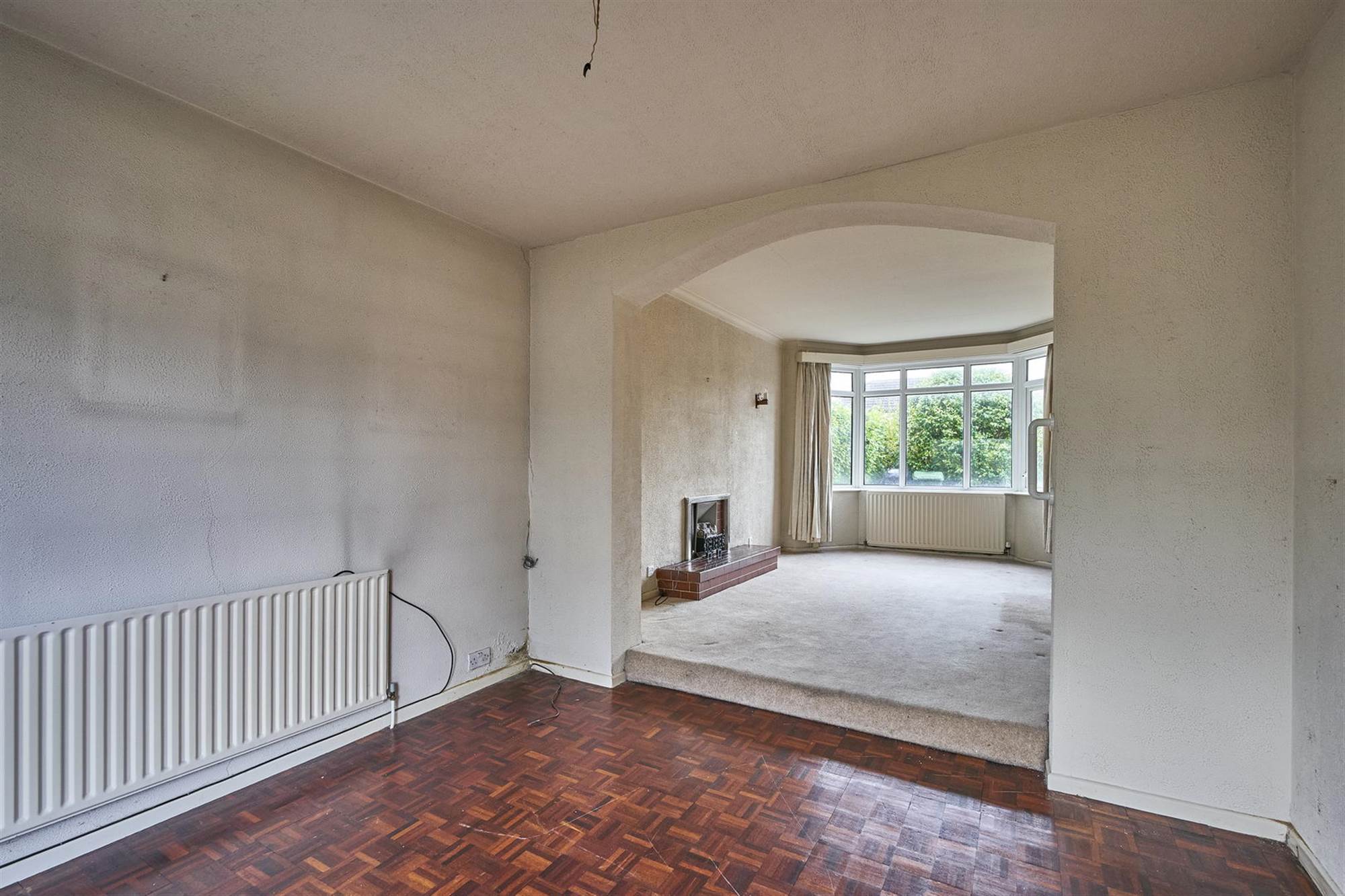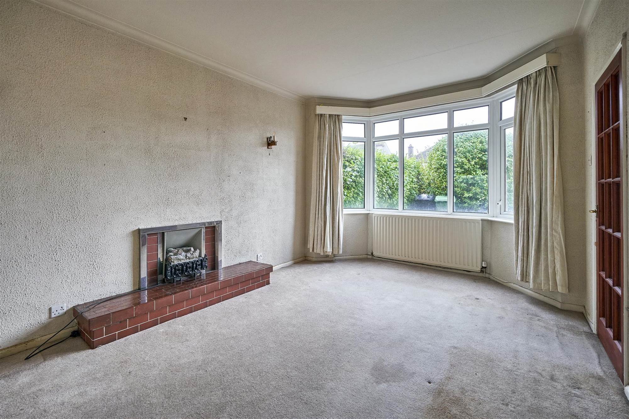 Raised tiled fireplace with electric fire insert. Feature bay window.