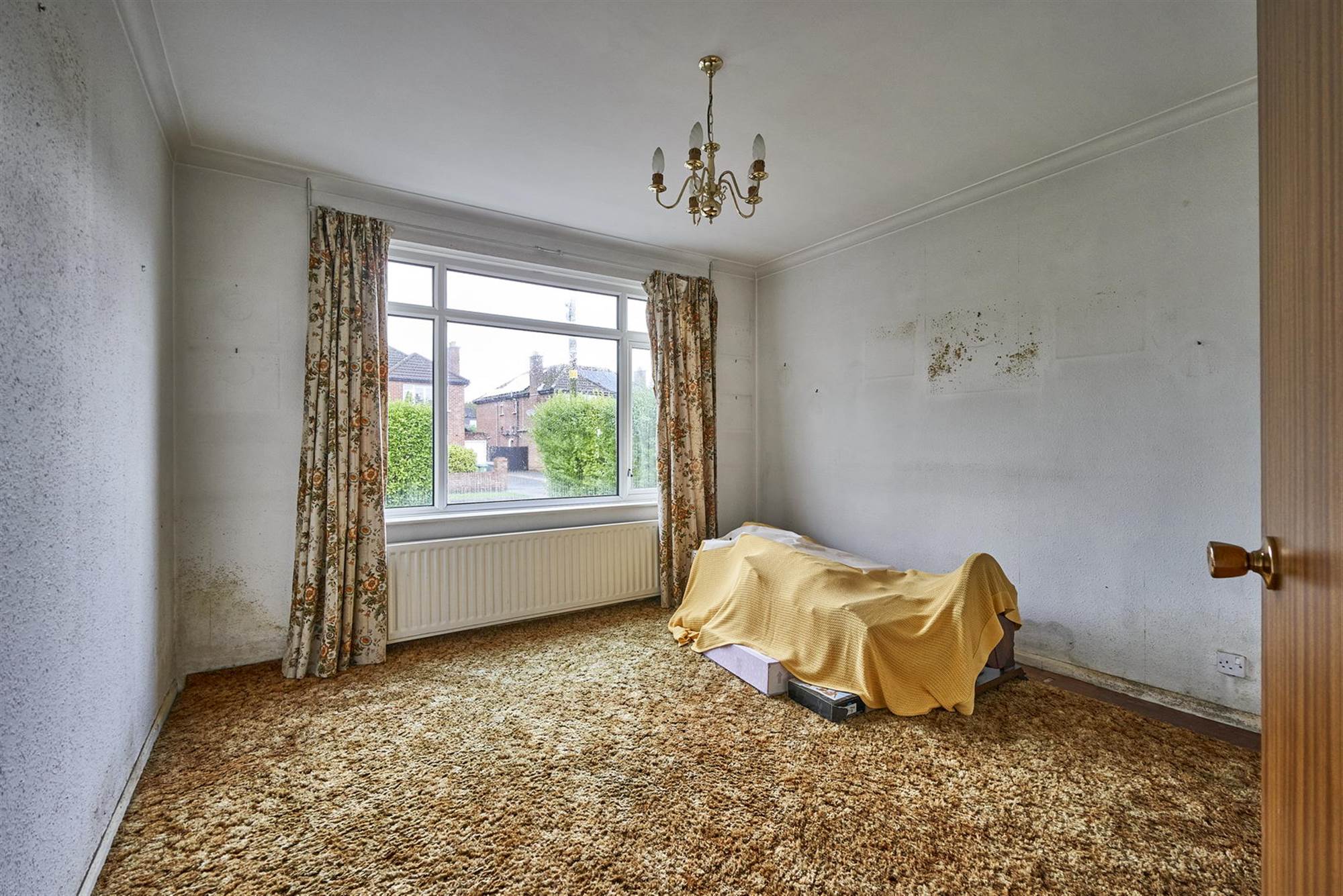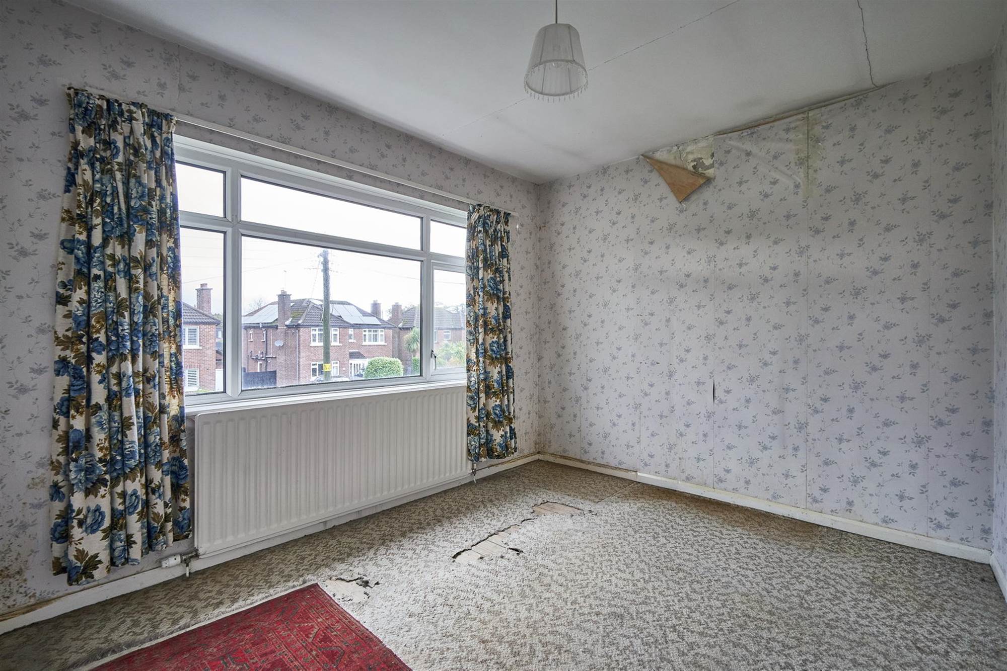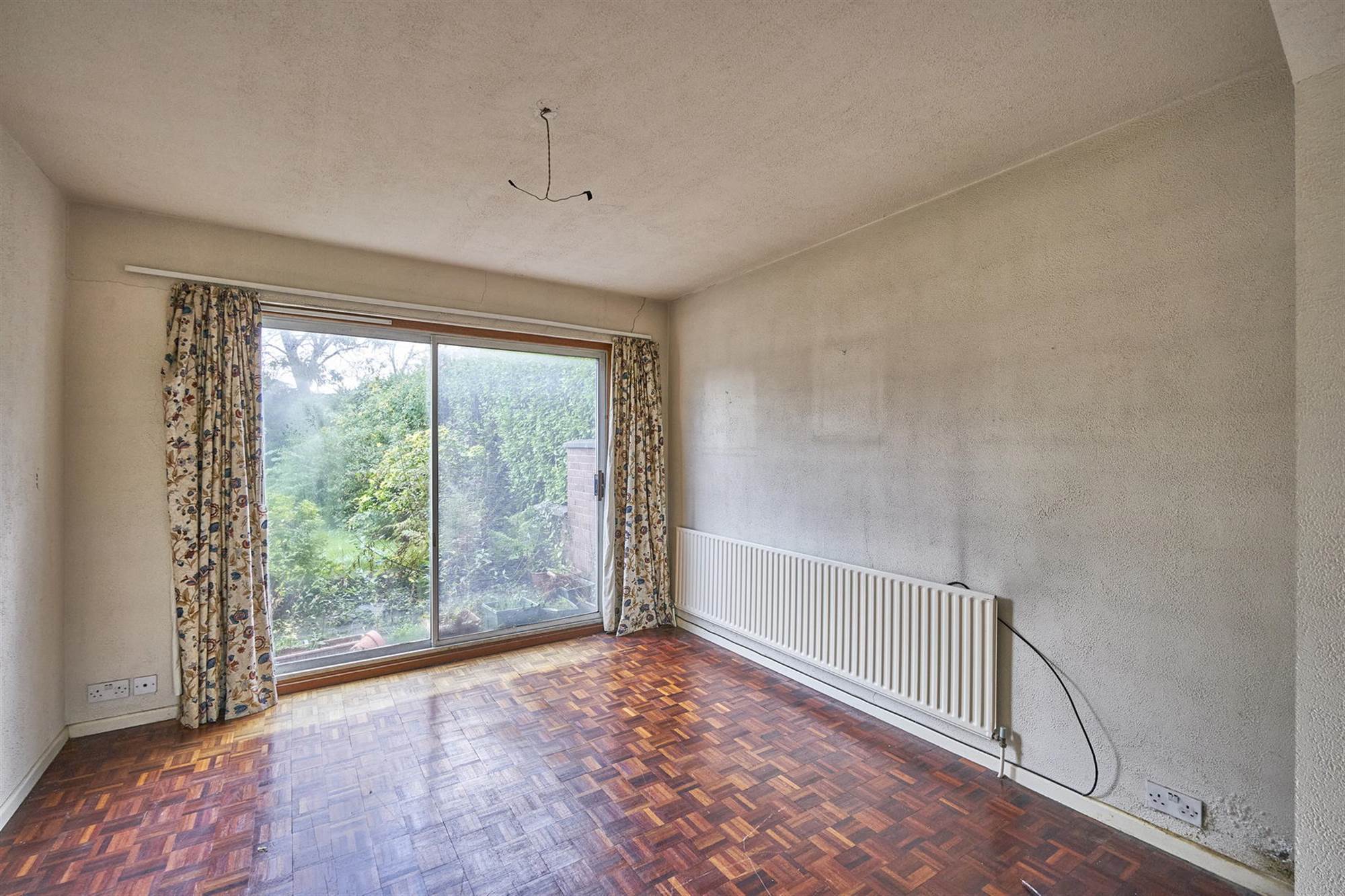 Raised tiled fireplace with electric fire insert. Feature bay window.