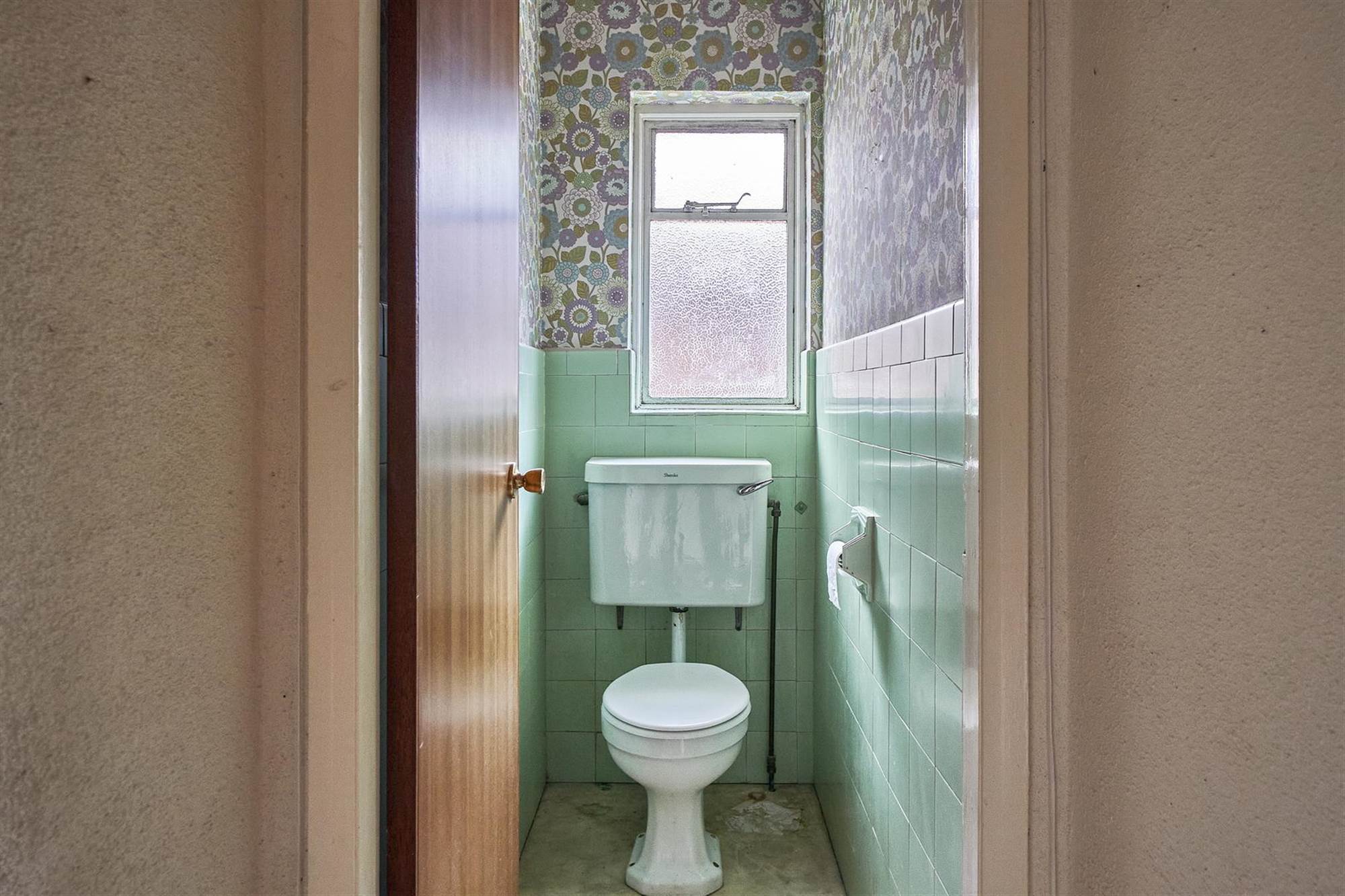 Low flush wc, part tiled walls