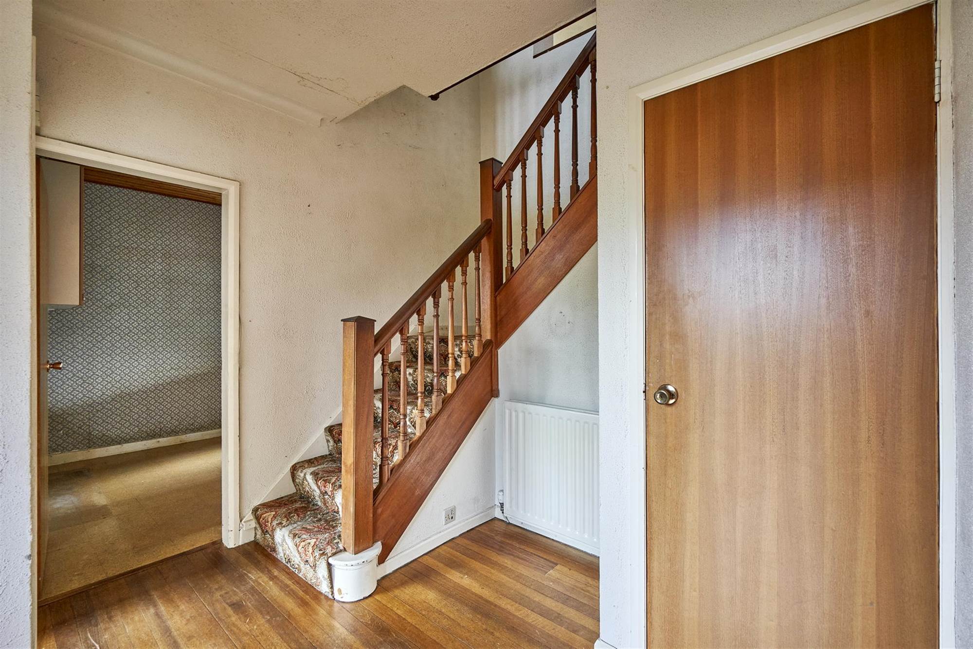 Hardwood front door, wood strip flooring