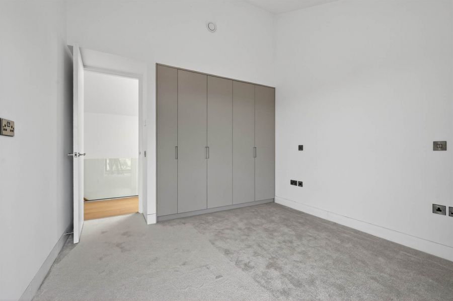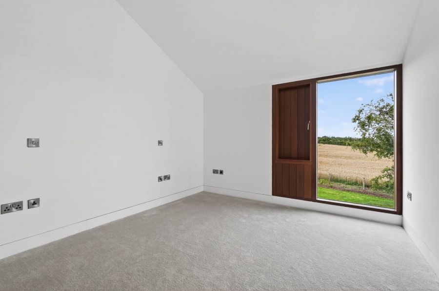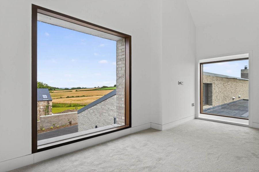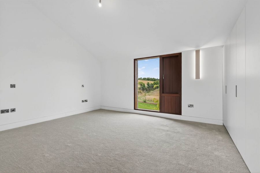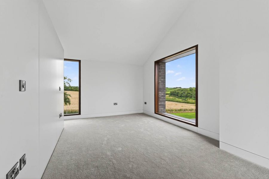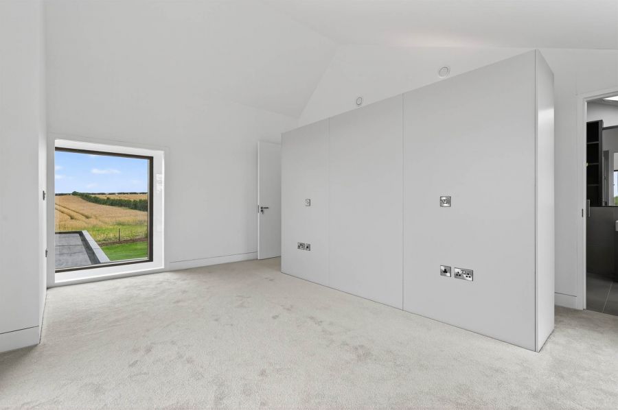 Triple aspect feature windows, vaulted ceiling, peaceful countryside and reservoir views, extensive built-in wardrobes, and wall lighting.