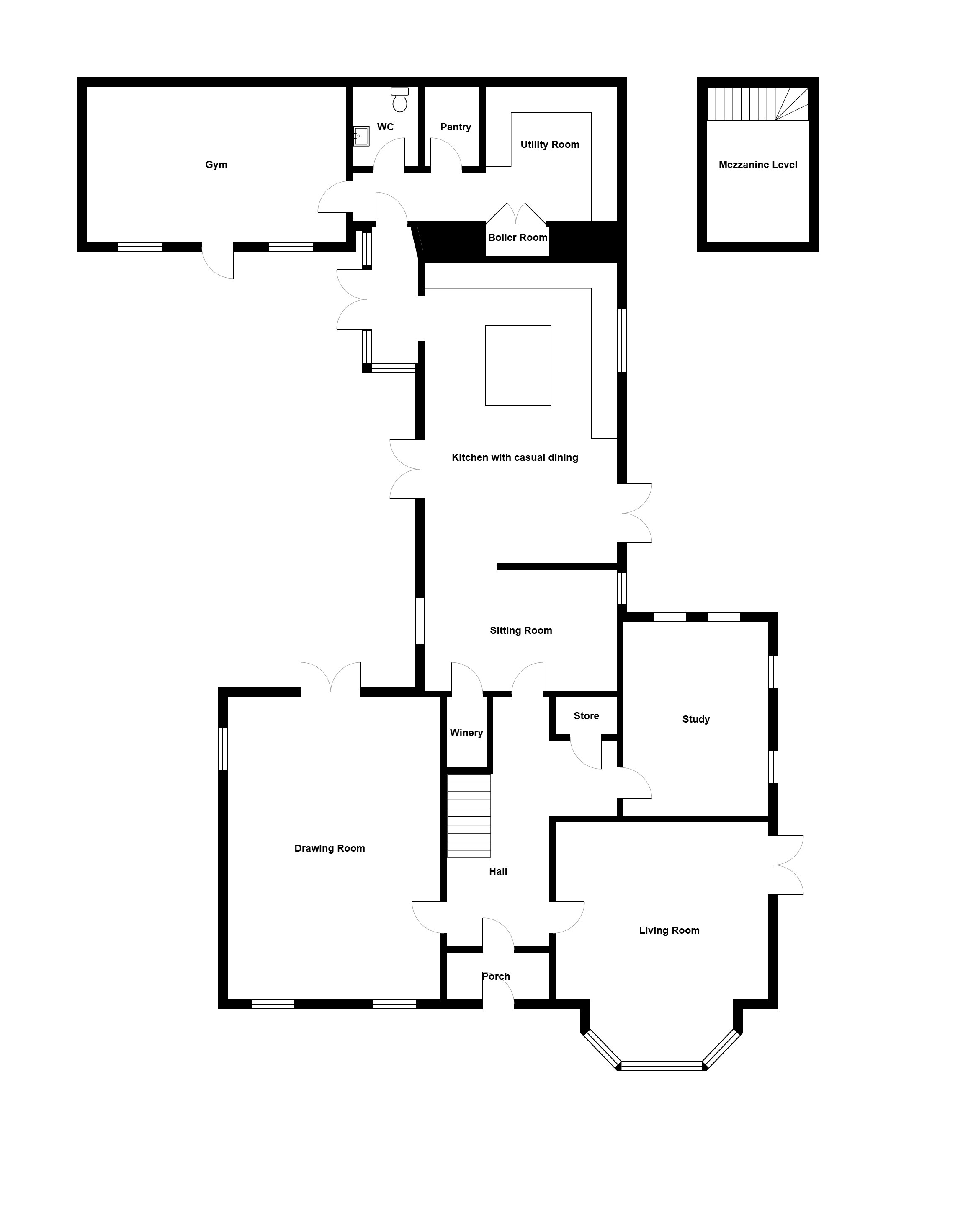 Access via main house, has been passed for ancilliary accommodation if required. Panelled walls with feature lighting and built in mirror, air conditioning (heat and cool) stable door to courtyard. Staircase to Mezzanine Level.