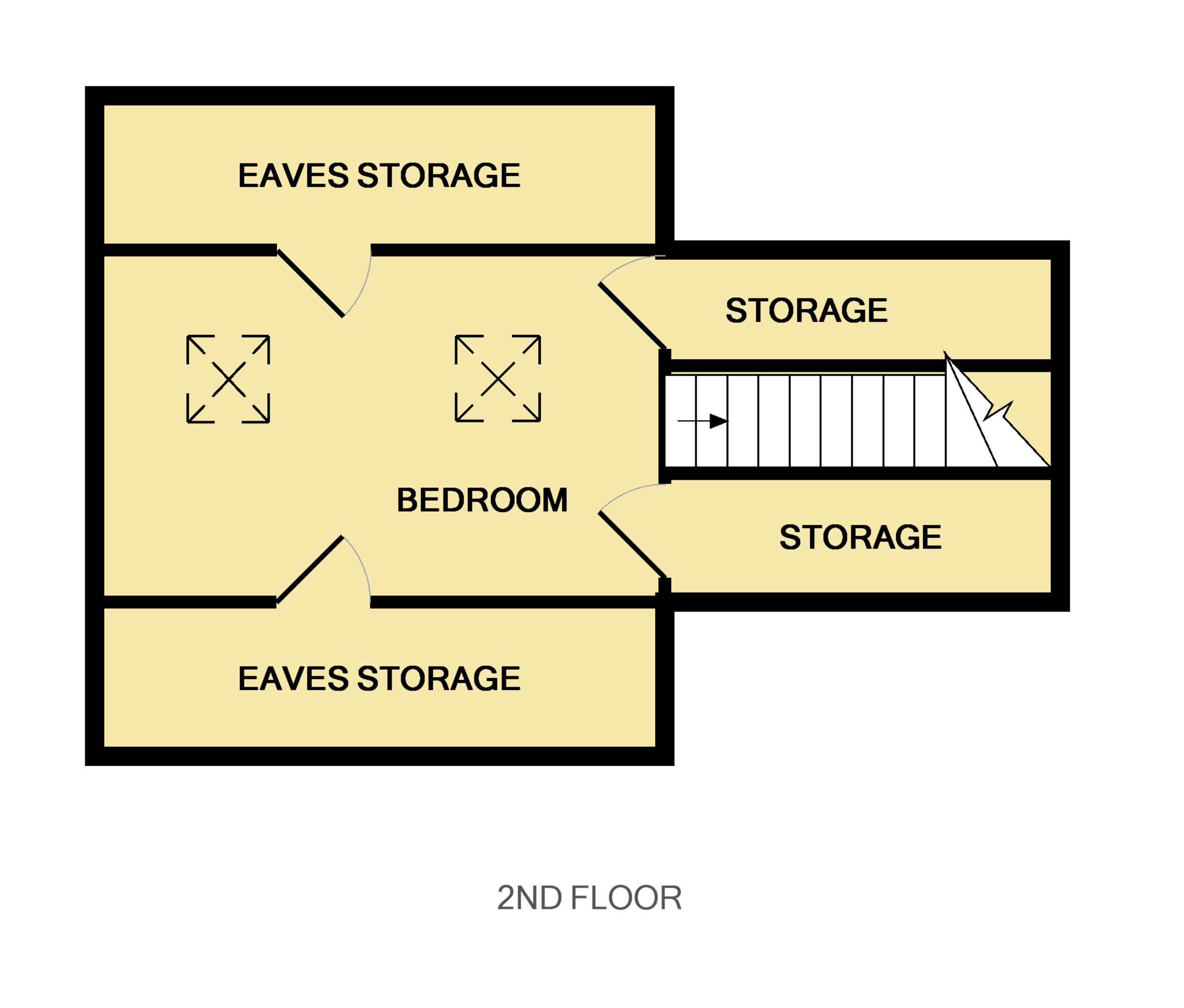 Vaulted ceiling, velux windows, access to storage space into eaves.