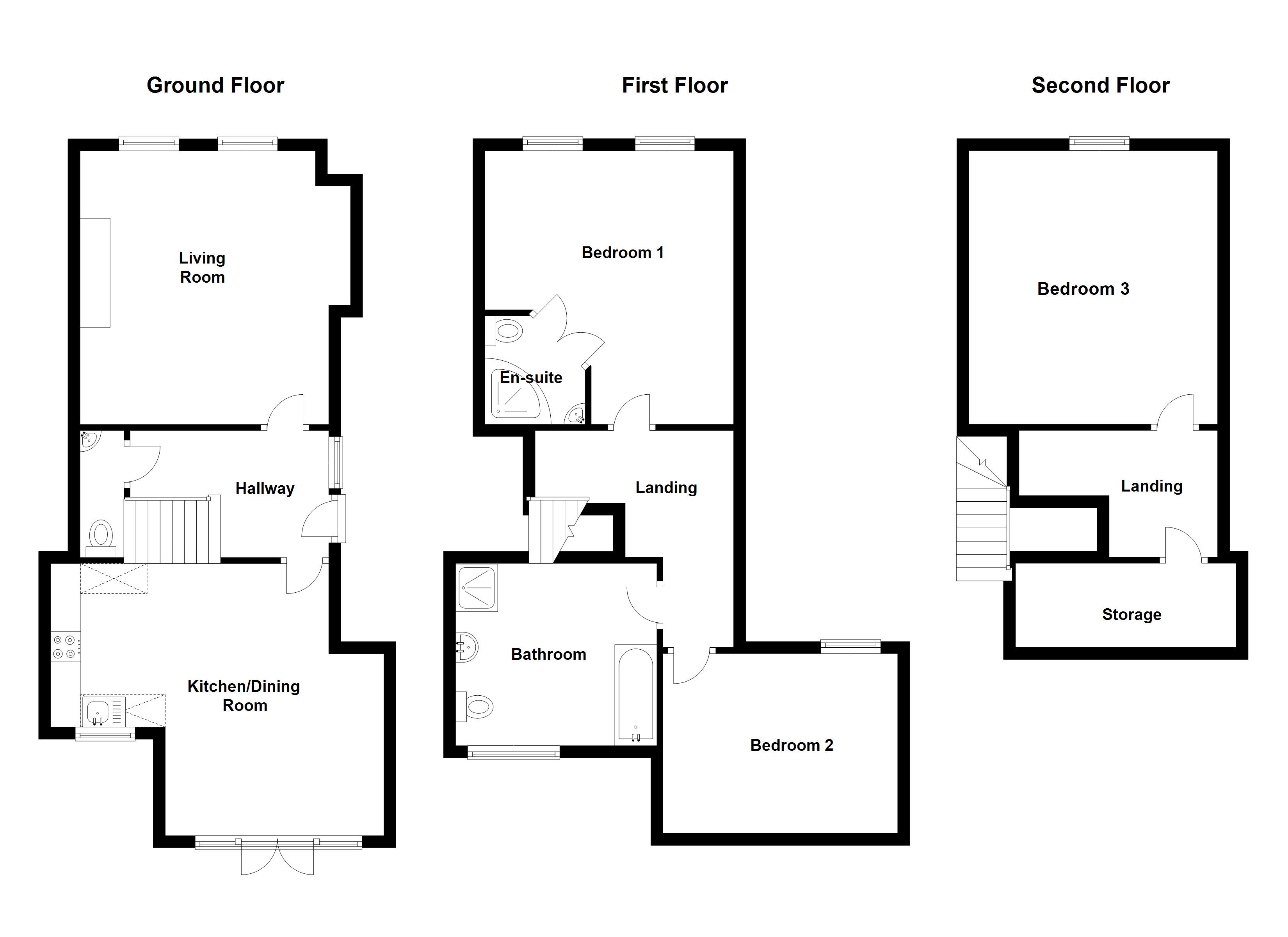 Spread over three floors there is spacious living room, separate kitchen open plan to dining, three well appointed bedrooms, principal with ensuite shower room and contemporary bathroom with four piece white suite.