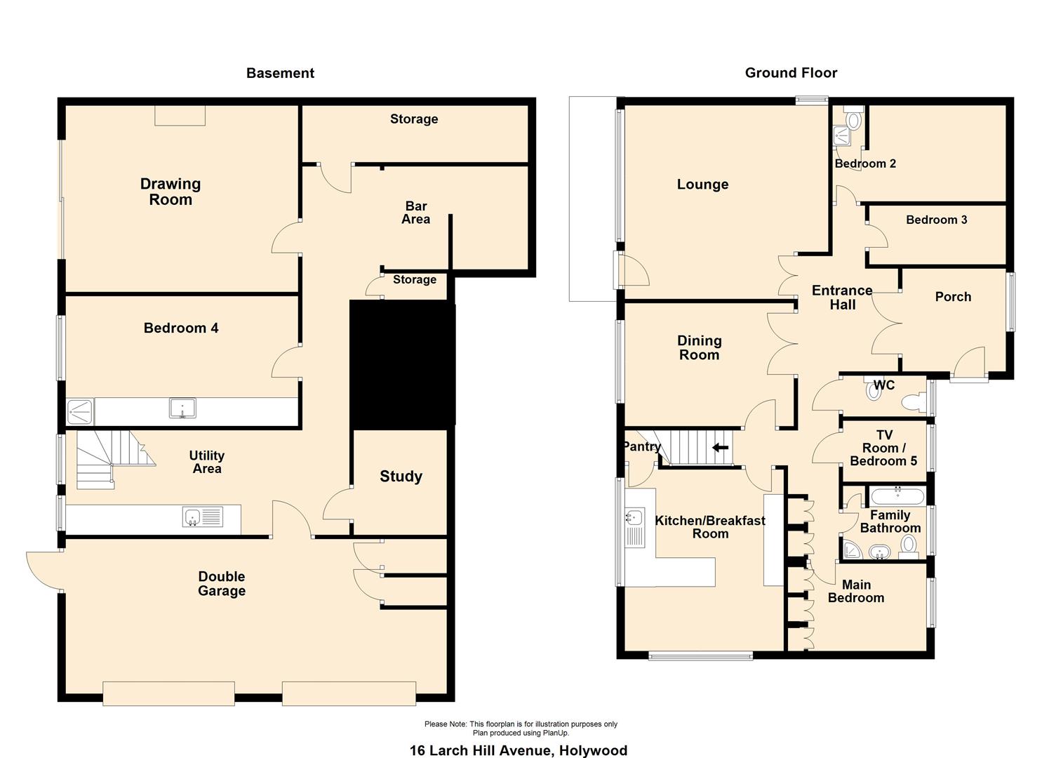 HMK Property is delighted to introduce No.16 Larch Hill Avenue, Holywood to the sales market. This substantial detached family home consists of bright entrance hall, a large lounge with balcony area, separate dining room, and separate kitchen with casual breakfast area. There are three excellent bedrooms, with built in robes and one with en-suite shower room, an additional television room/teenage den (previously used as a 5th bedroom) and separate W/C. On the lower level there is a useful utility area, plumbed for washer/dryer, leading to a separate study/home office, a fourth bedroom with built in storage, ceramic sink and separate shower cubicle. Furthermore, there is a large drawing room with sliding doors with direct access to a large patio area and substantial rear garden. Adding to the unique feel of No.16 Larch Hill Avenue, there is an integrated bar area, with mahogany counter top, and access to storage space and a further concealed storage room. Also on the lower ground level is direct access to a large double garage, with twin doors, electric, two additional storage rooms and access to rear garden. Tucked away on a generous corner site No.16 offers ample off street parking, and mature gardens and flowerbeds. To truly appreciate the space, flexibility and potential No.16 has on offer, contact HMK Property to arrange a viewing on 02890397712.