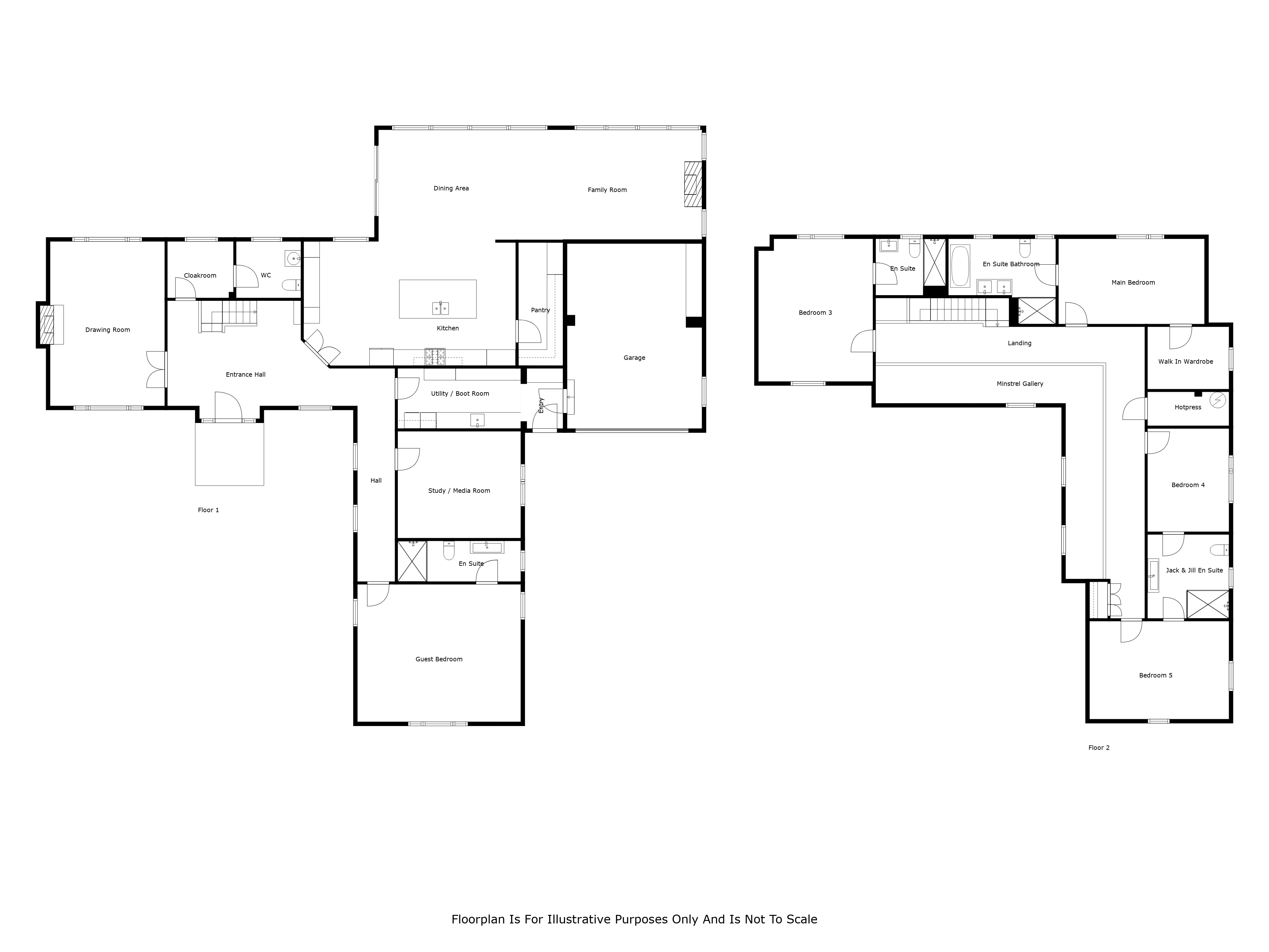Five bedrooms, each with luxury ensuite facilities, master also with walk-in dressing room