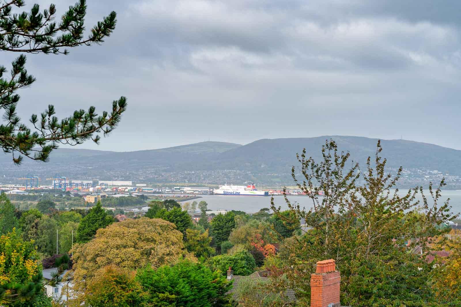 Elevated site with panoramic views across Belfast Lough, Antrim Hills, and Belfast Harbour