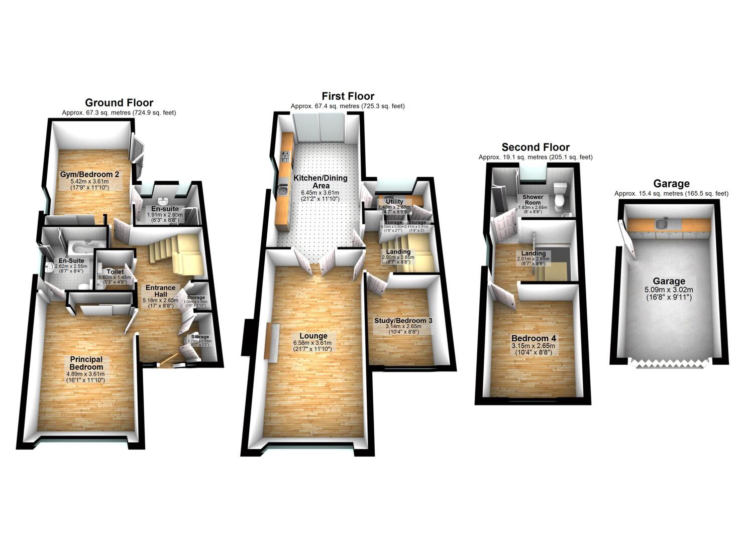 Three bedrooms plus study/bedroom four; two en suites and a family shower room