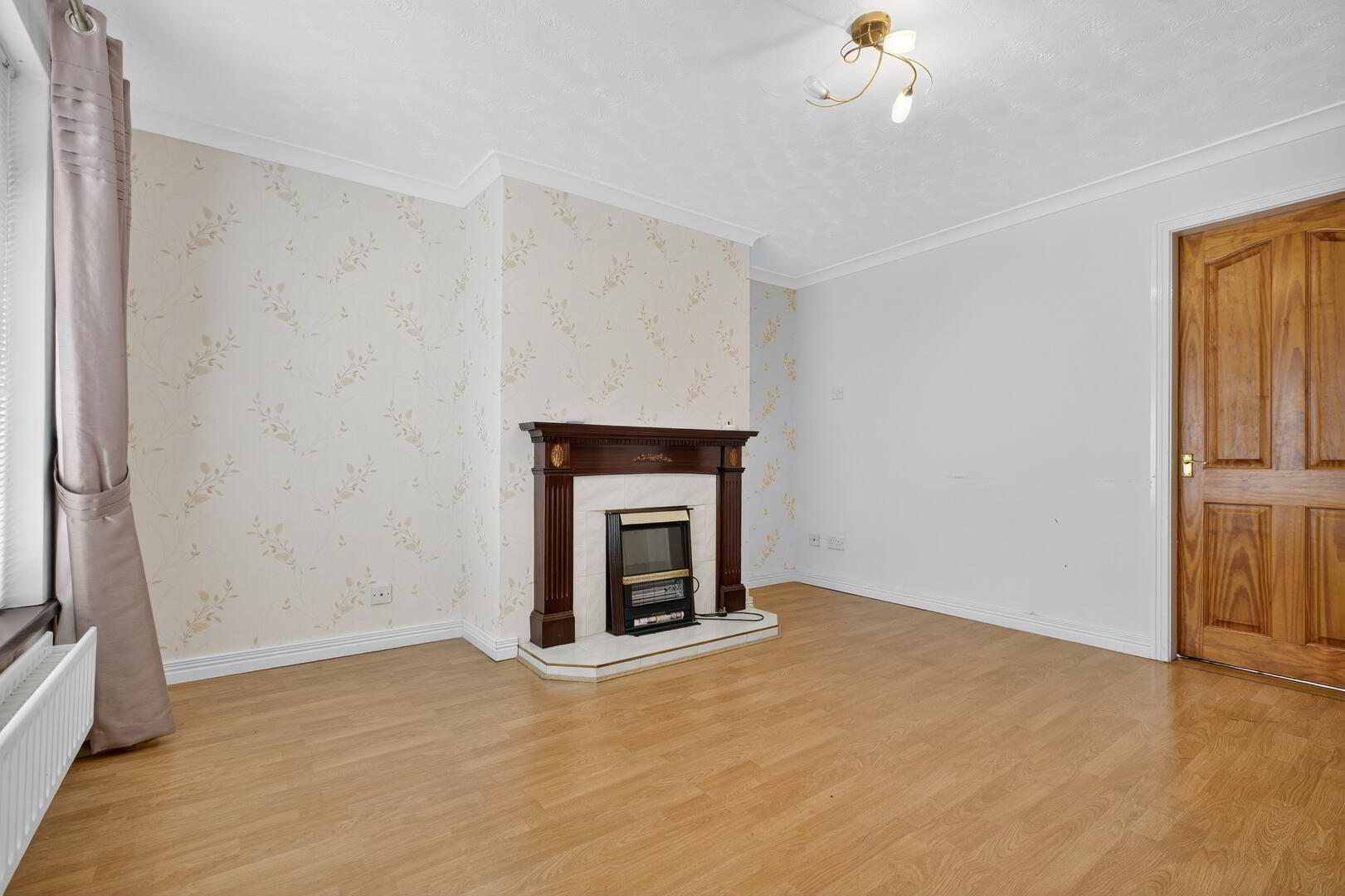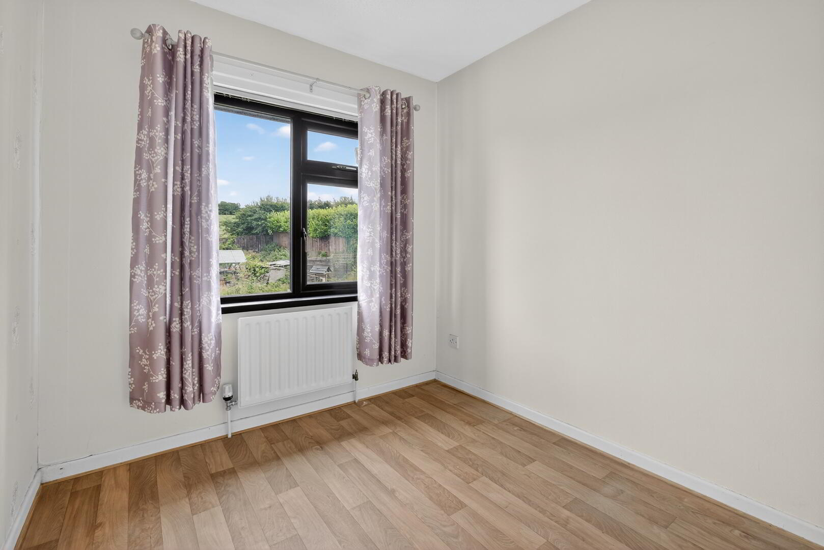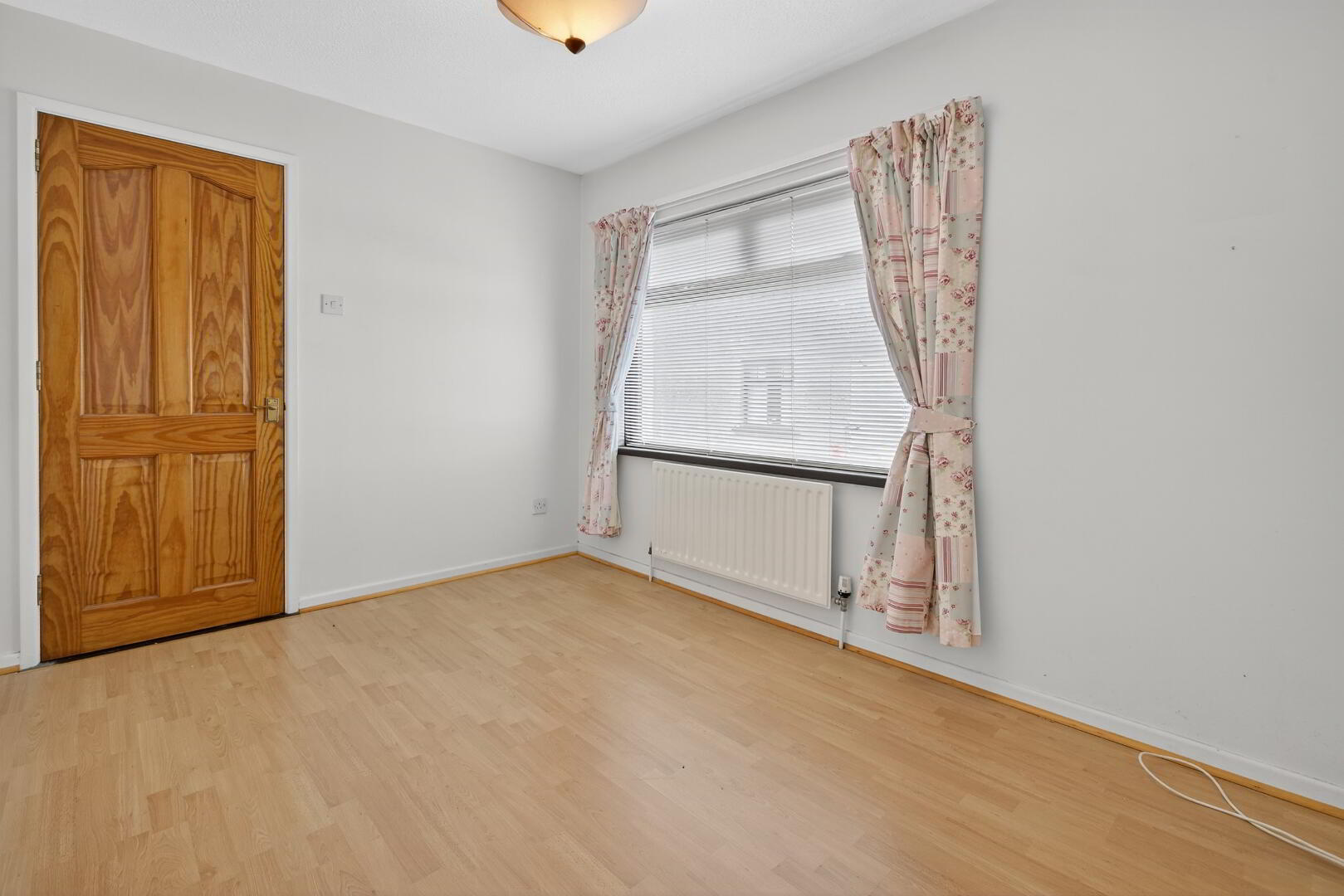 Telephone point and wood effect flooring extending through