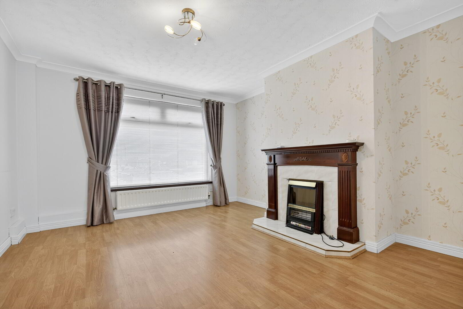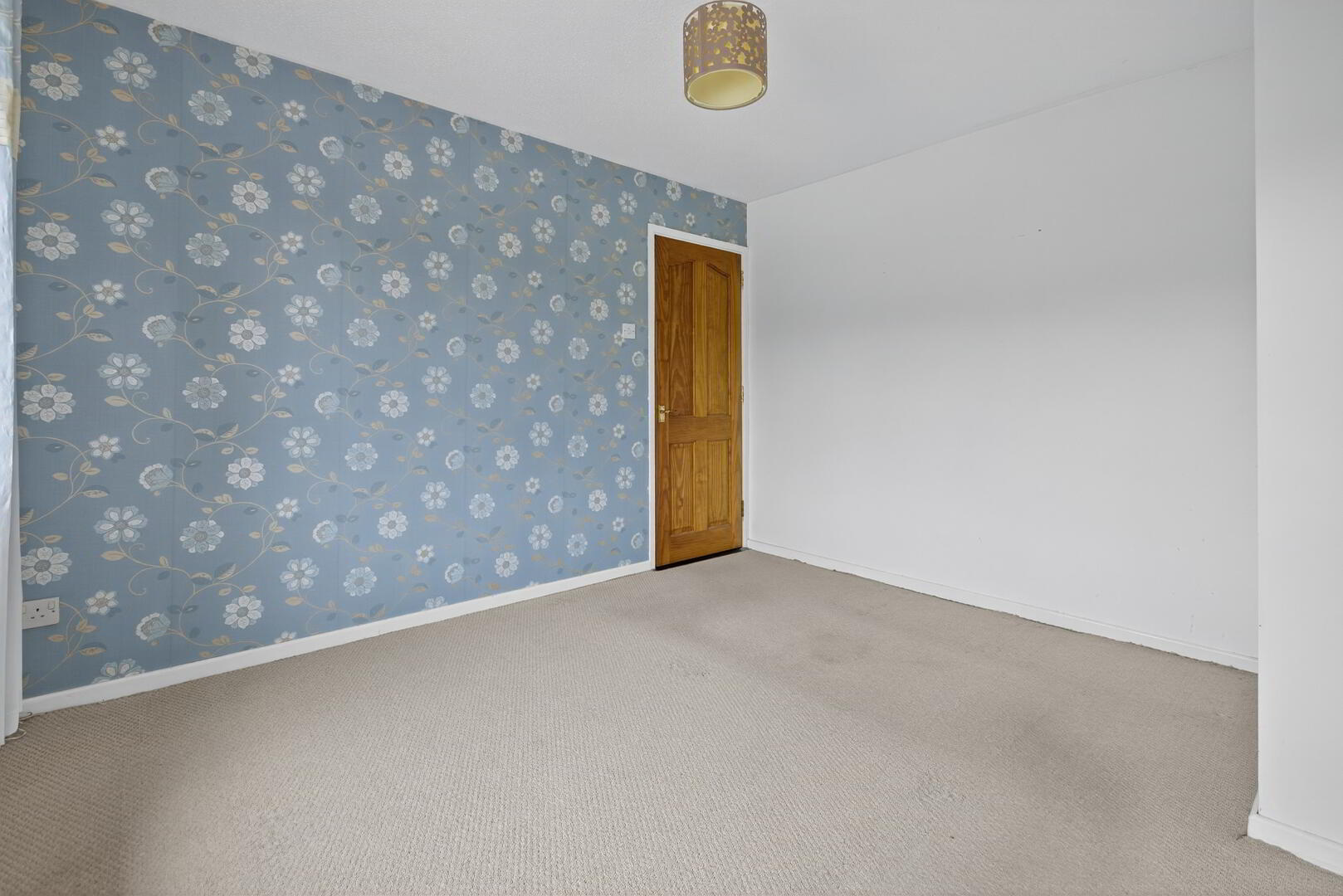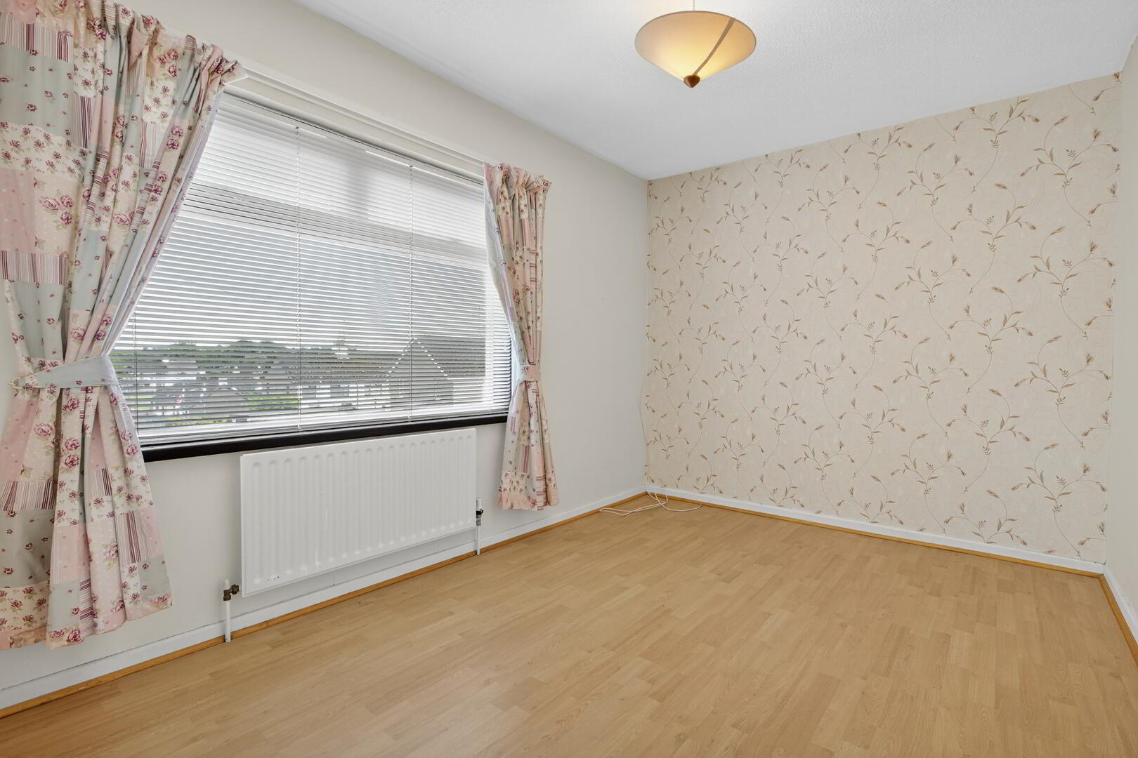 Telephone point and wood effect flooring extending through
