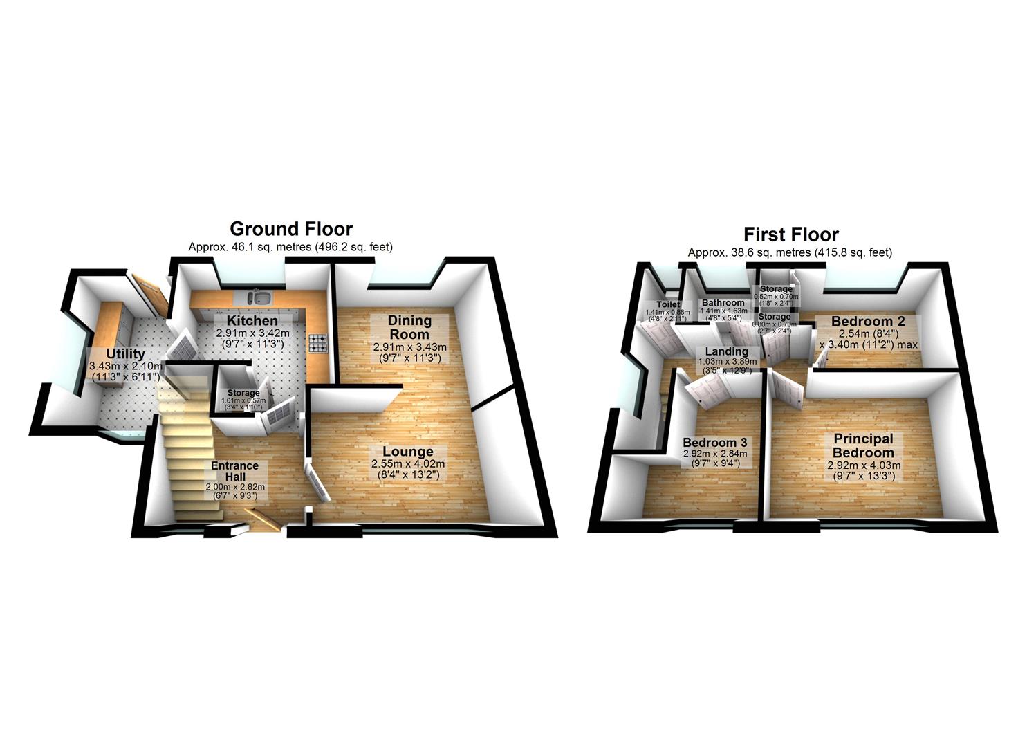 Bedroom Three 9'7 X 9'4 (2.92m X 2.84m)