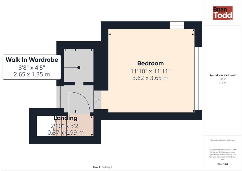 Built in wardrobe with access to attic storage room. Walk in wardrobe. Delightful views to the surrounding countryside.