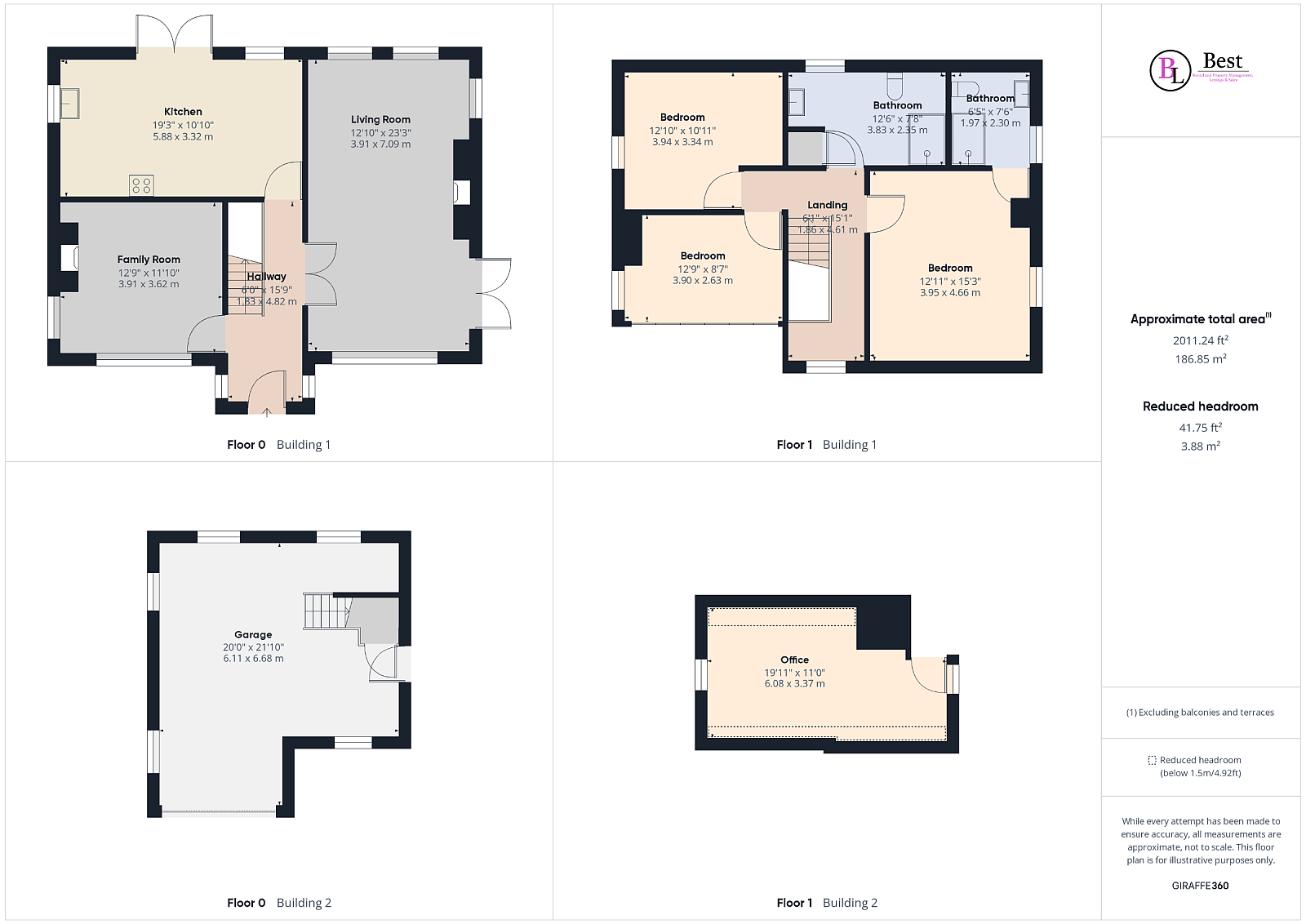 Garage w: 6.6m x l: 6.11m (w: 21' 8" x l: 20' 1")