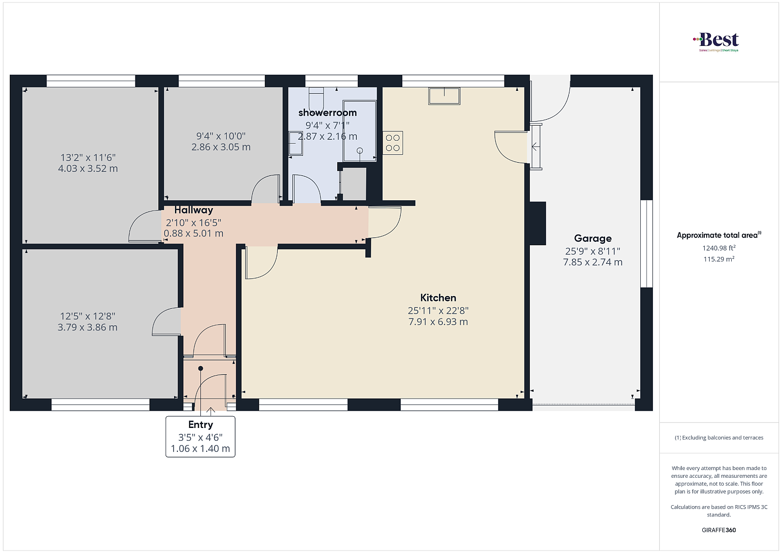 Bedroom 1 w: 3.86m x l: 3.79m (w: 12' 8" x l: 12' 5")