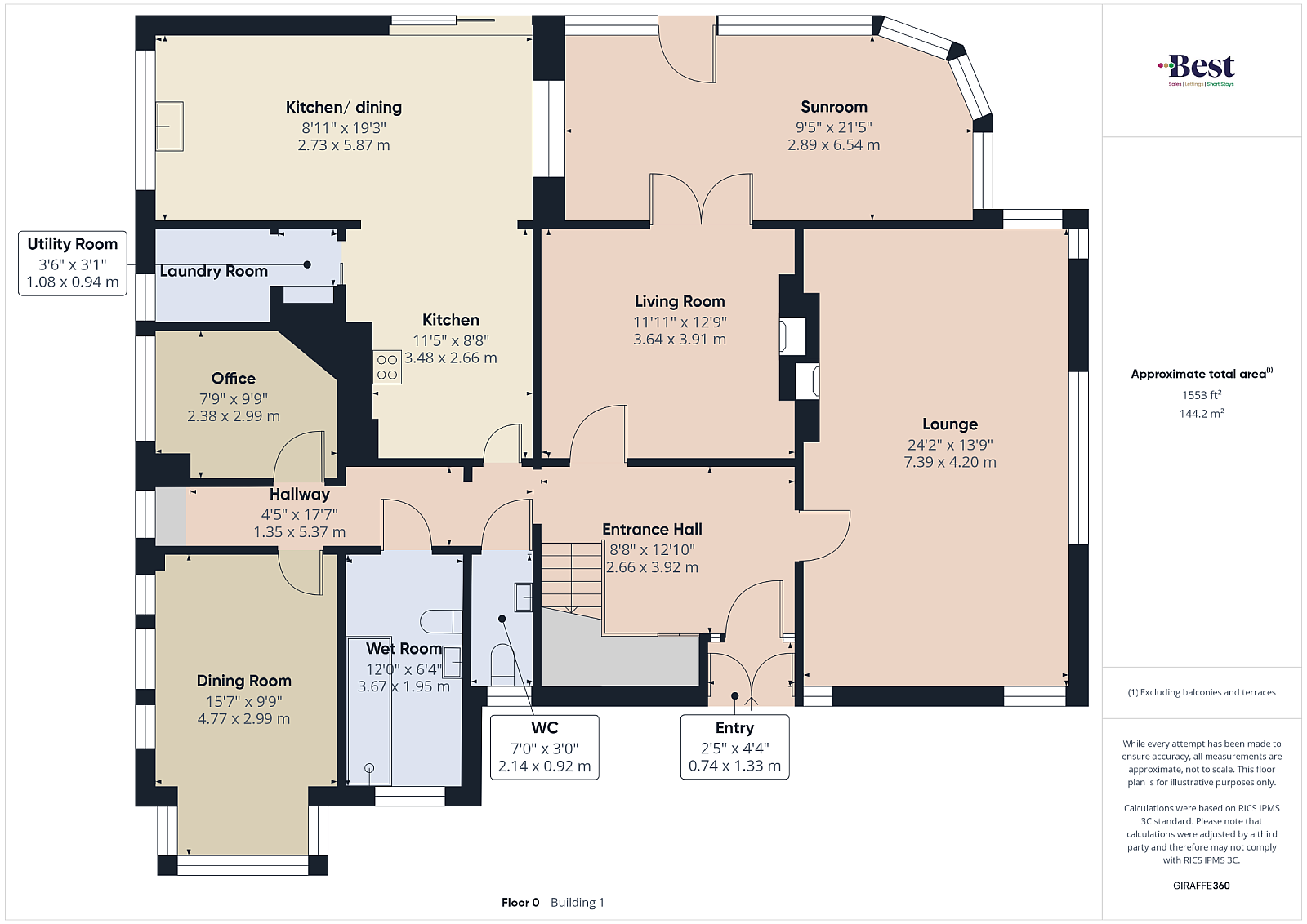 Lounge w: 7.45m x l: 4.23m (w: 24' 5" x l: 13' 11")