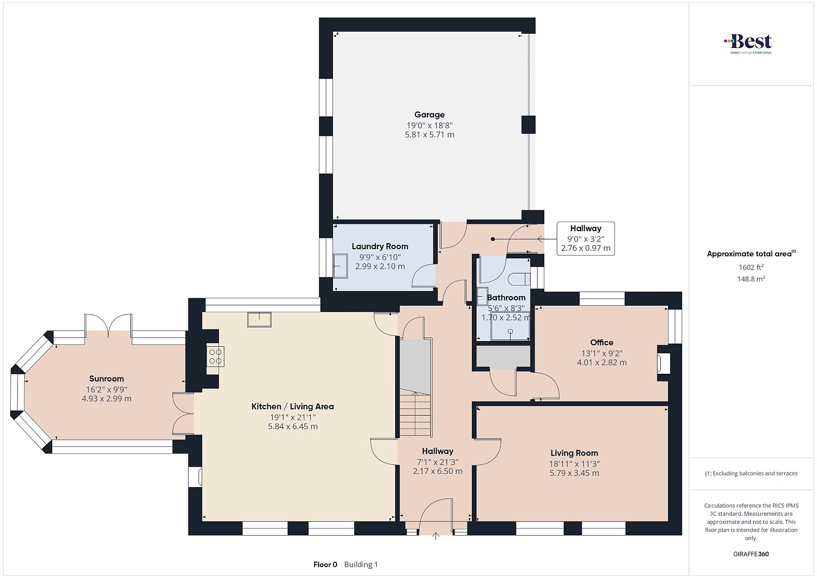 Garage w: 5.81m x l: 5.71m (w: 19' 1" x l: 18' 9")
