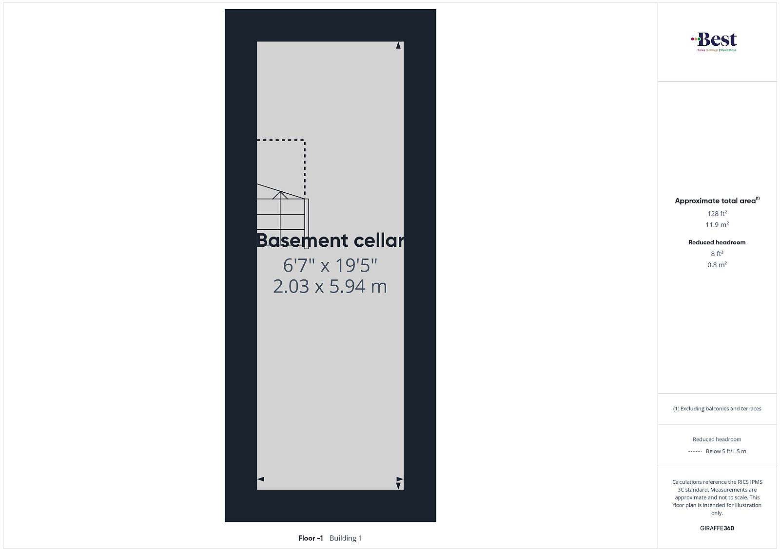 Basement Level w: 2.03m x l: 5.94m (w: 6' 8" x l: 19' 6")