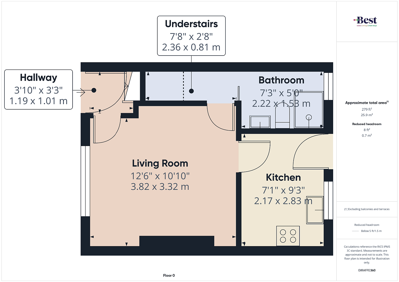Living room w: 3.82m x l: 3.69m (w: 12' 6" x l: 12' 1")