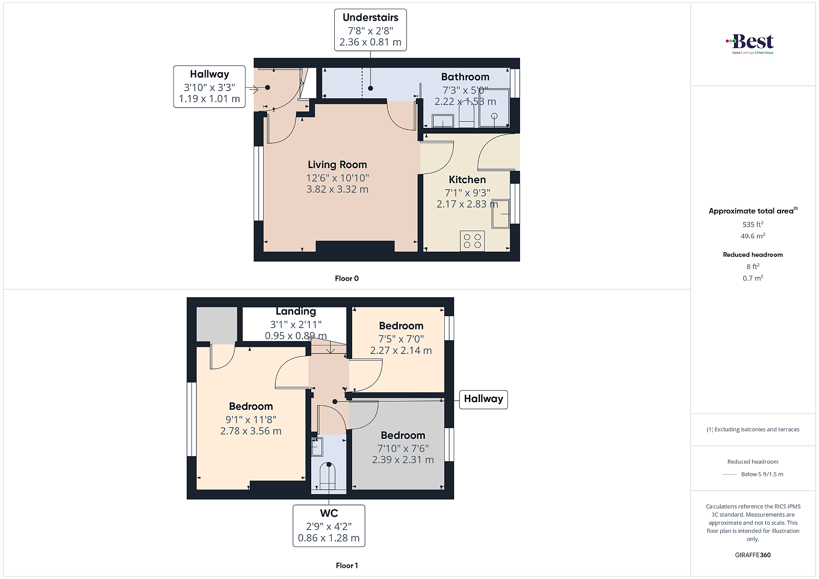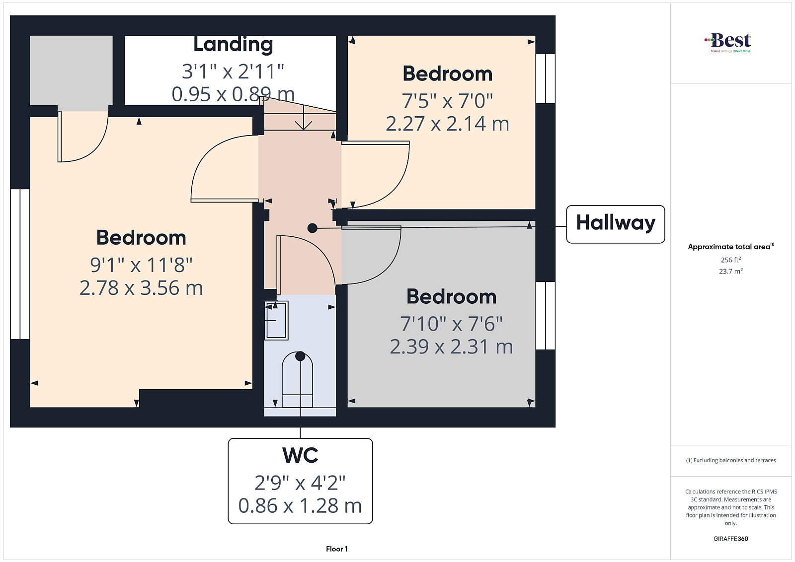 Bedroom 2 w: 3.26m x l: 2.31m (w: 10' 8" x l: 7' 7")