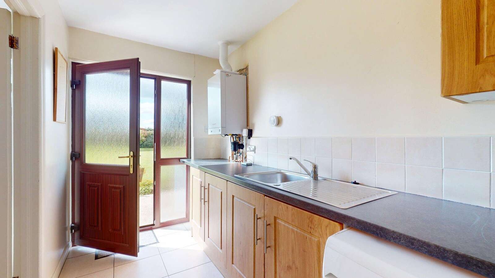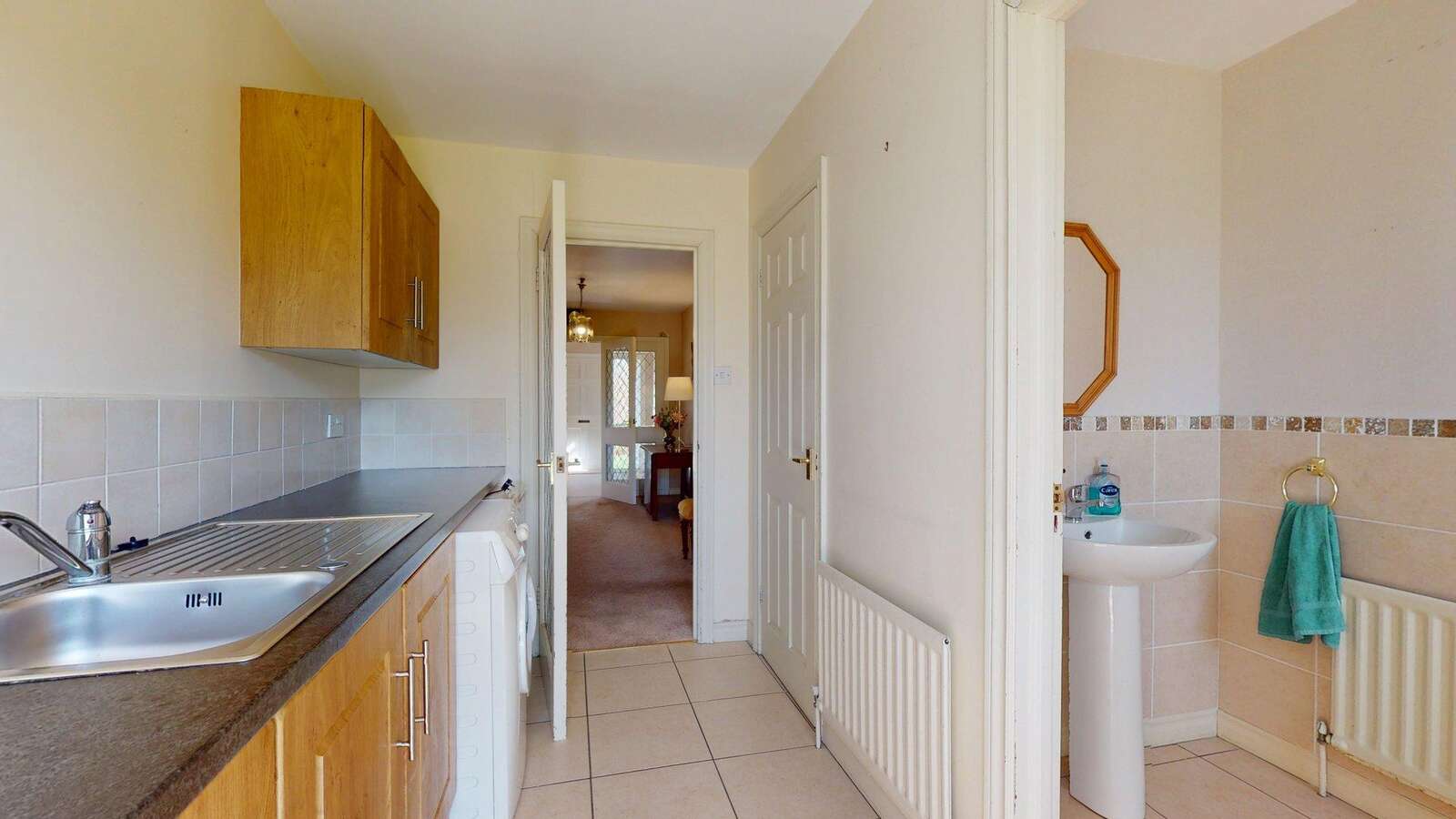 11'6 x 5'8 Good range of Oak units with matching worktops. Stainless steel sink unit and single drainer with chrome mixer taps. Part tiled walls. Tiled floor. Plumbed for washing machine. Gas combi boiler. Storage Room/Broom Cupboard.