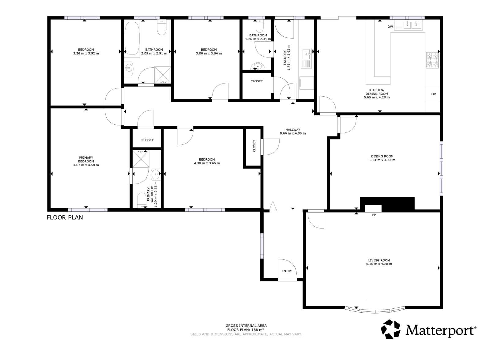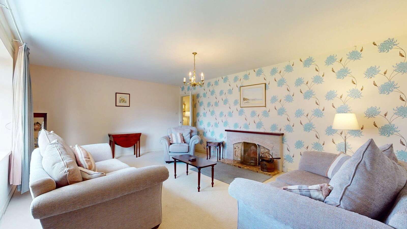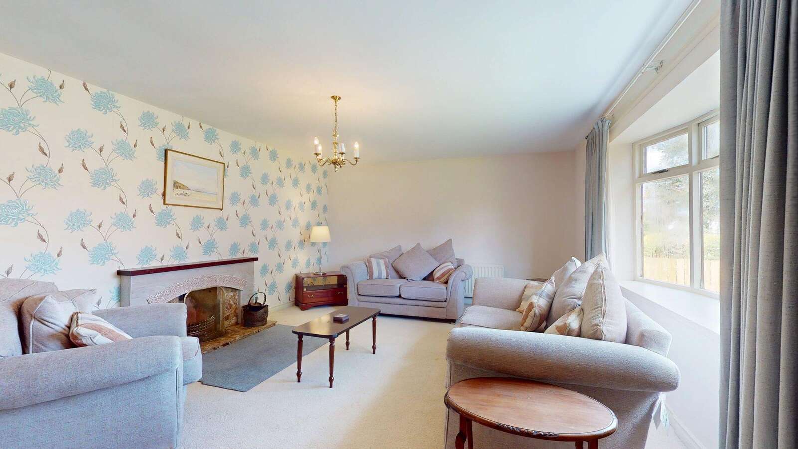 19'6 x 13'6 Feature tiled and marble fireplace with open fire and hardwood mantle. Attractive bow window.