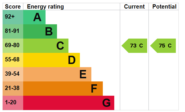 Bathroom :7’10 x 7’0 White 3 piece suite comprising ‘P’ shaped bath. Overhead power shower and shower attachment. Shower screen. Low flush wc. Pedestal wash hand basin. Chrome heated towel rail. Half tiled walls. Tiled floor.