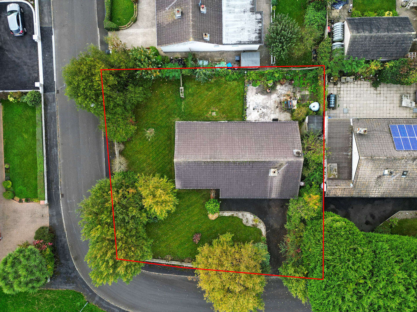 Excellent corner site with mature gardens to front, side and rear of dwelling laid out in lawns, plants shrubs and trees enclosed by wall, fencing and gates. Concrete driveway leading to Integral Garage. Patio area to south west facing rear garden. Outside lights and water tap. Garden Shed. PVC oil tank.