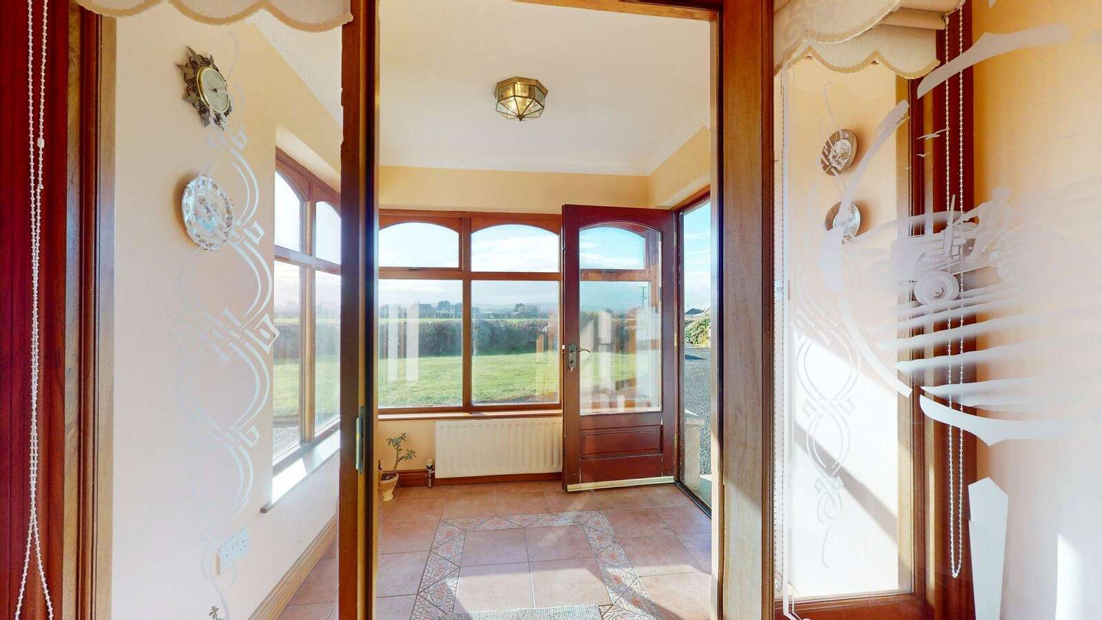 6'8 x 6'8 Hardwood front door with double glazed centre light. Tiled floor. Ornate ceiling cornicing.