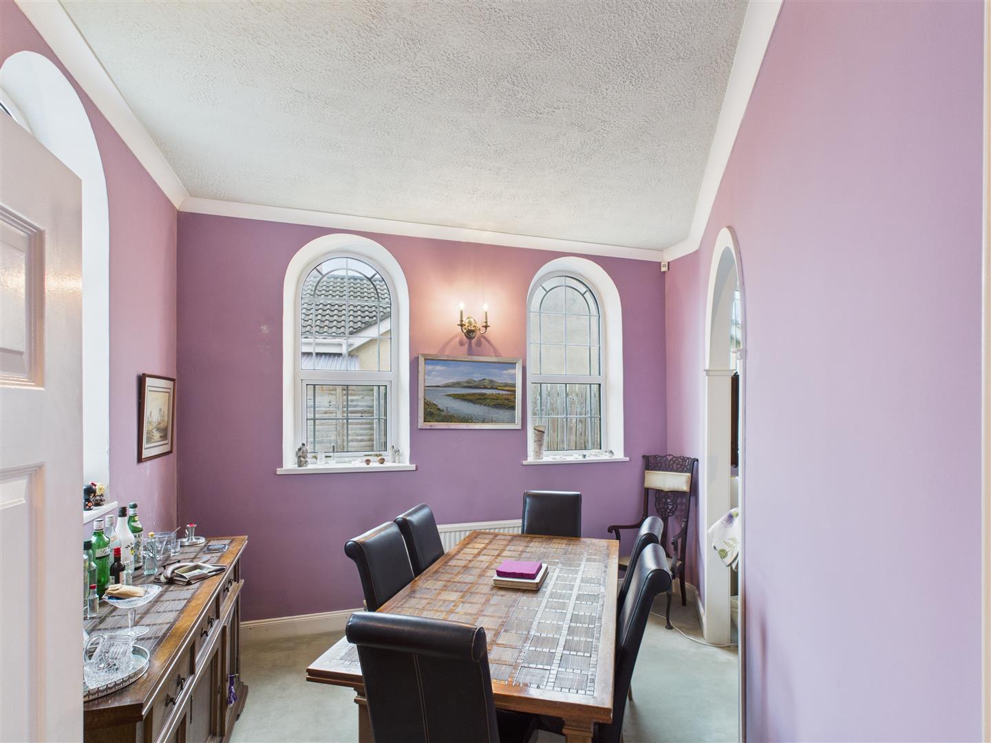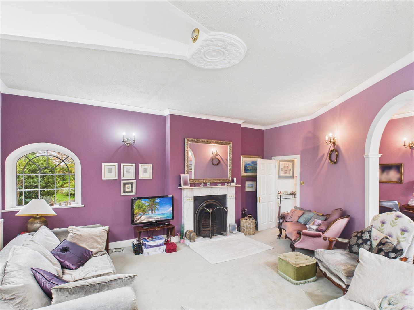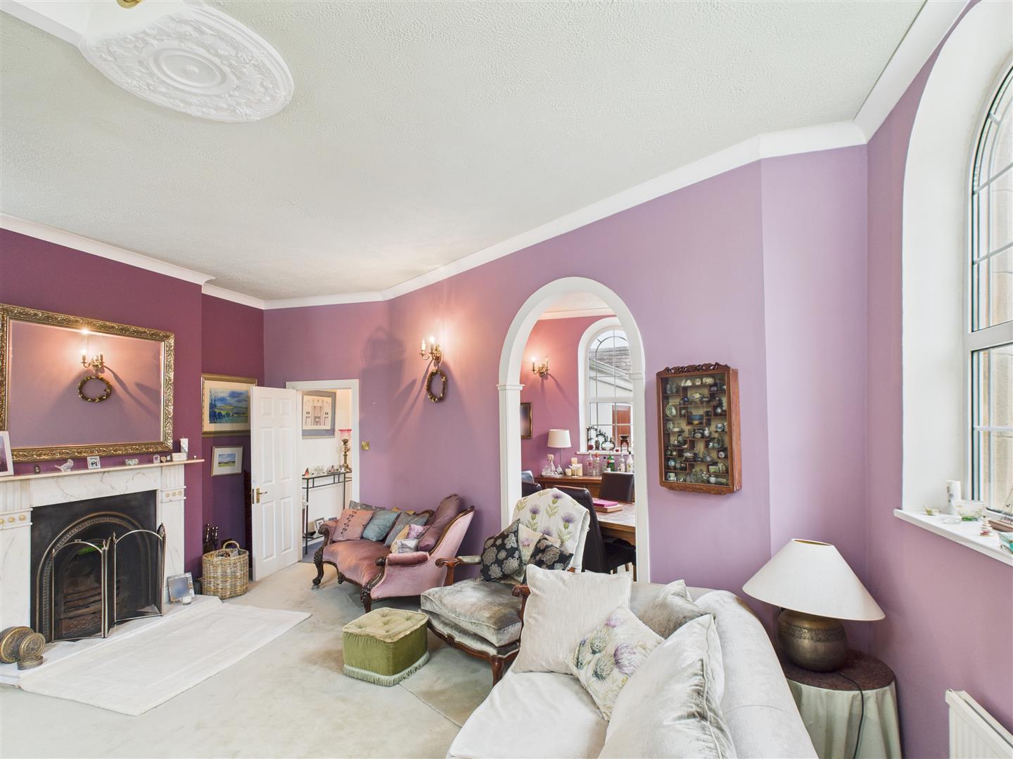Fitted with a marble fireplace with a cast iron inset and a marble hearth. Points for wall lights. Coving around ceiling and centre piece. Feature arch windows. Archway through to dining room.